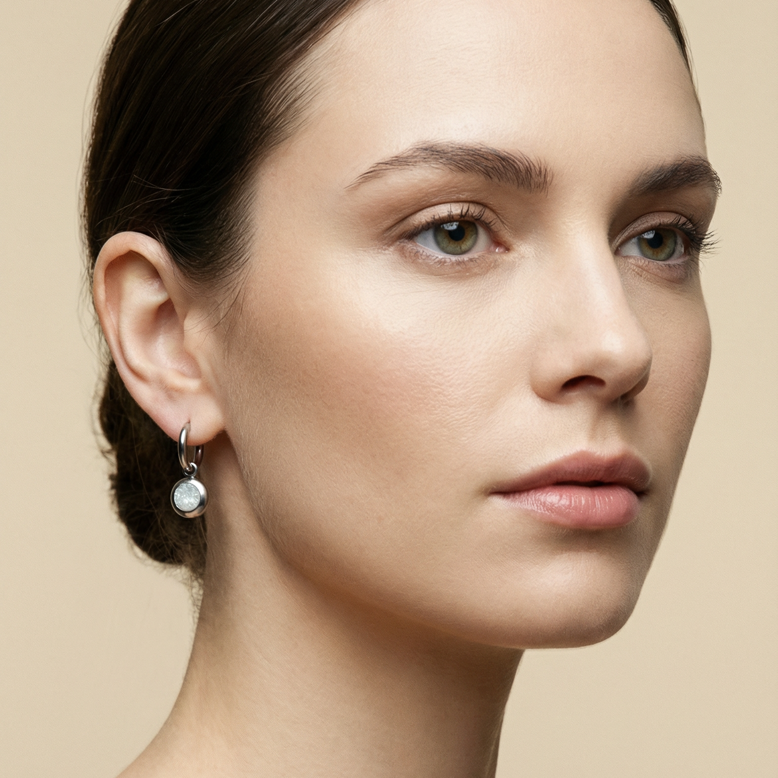 Art Nouveau cross earring charms with Titanium huggie hoops