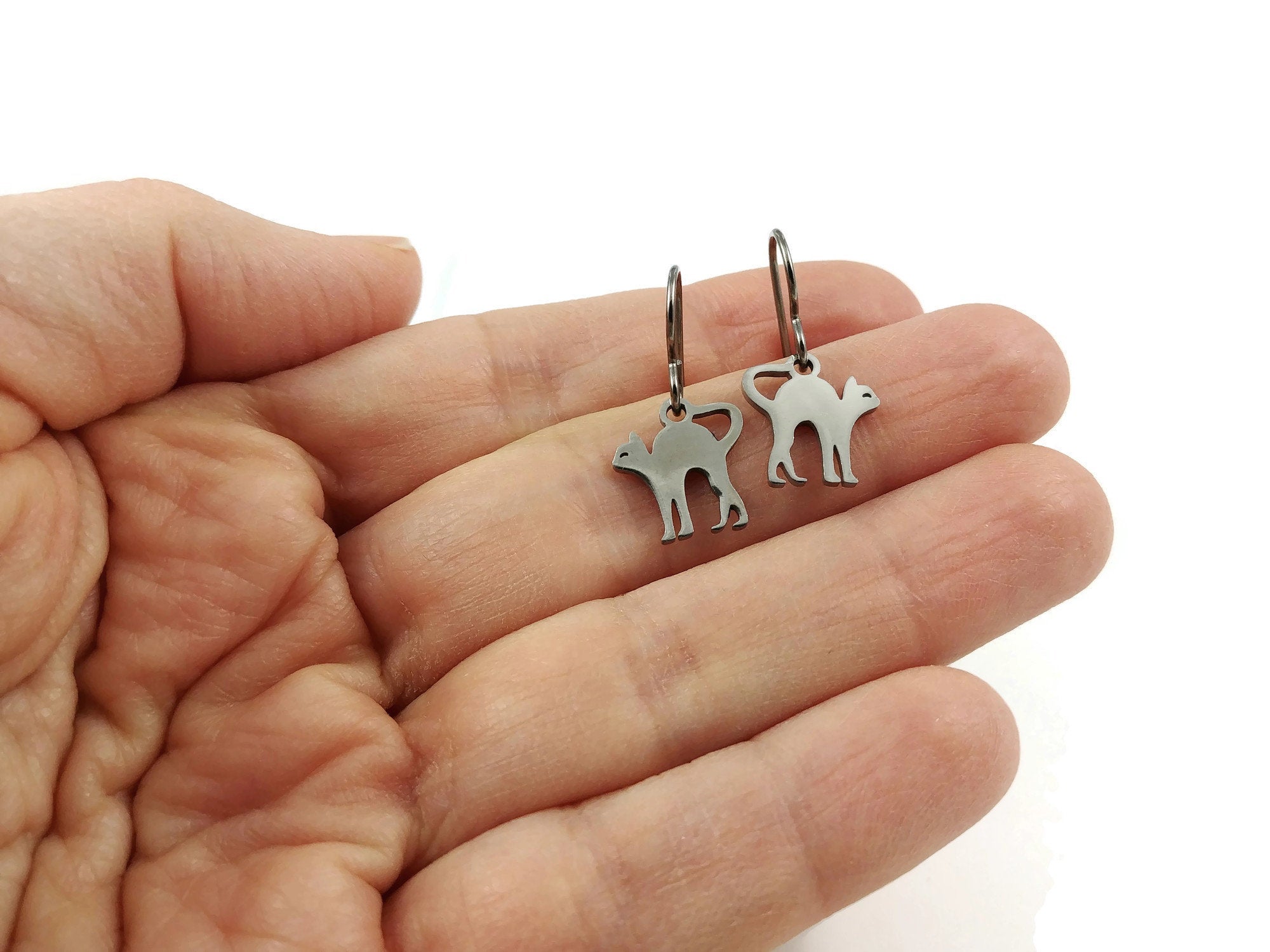 Mini cat dangle titanium earrings