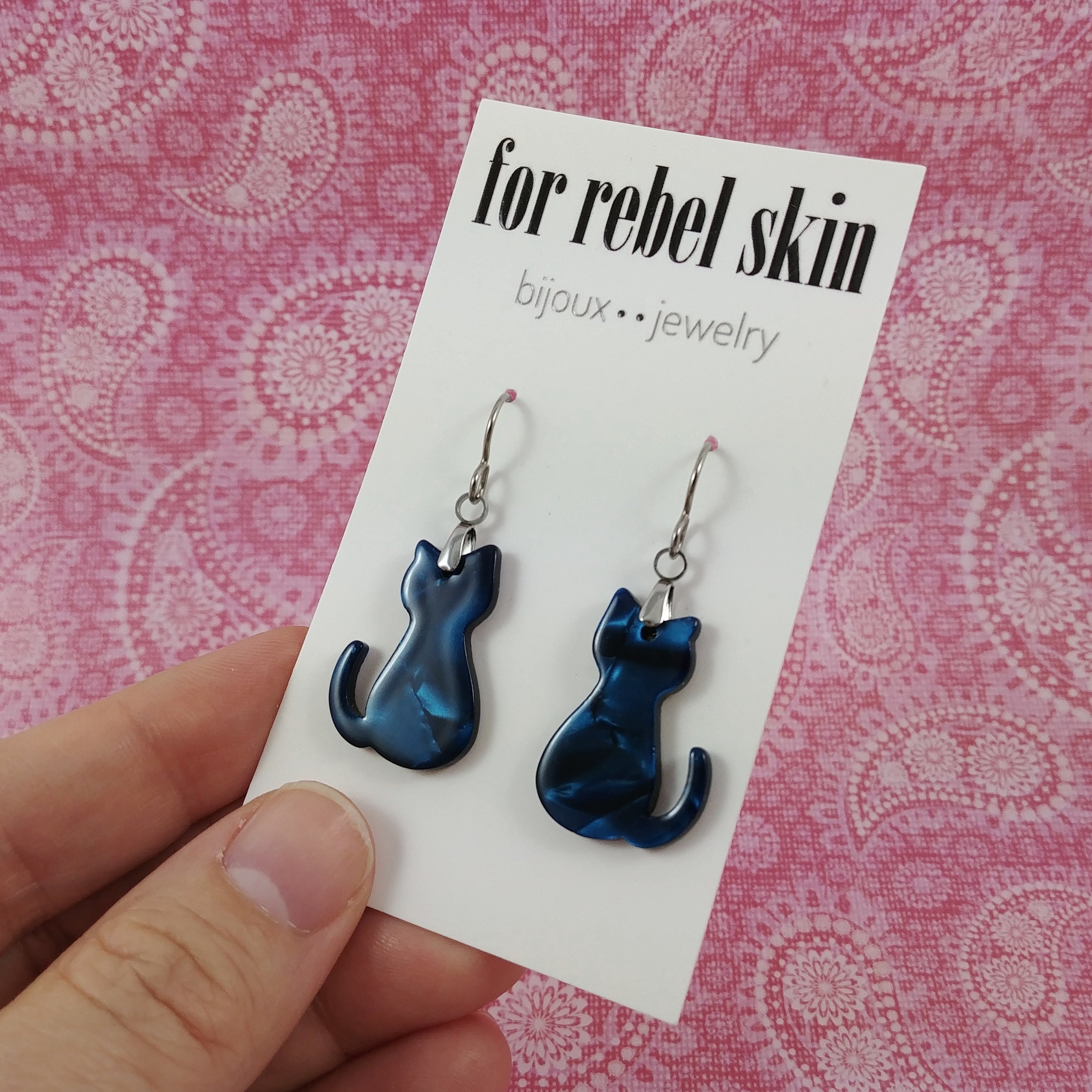 Blue acrylic cat titanium earrings
