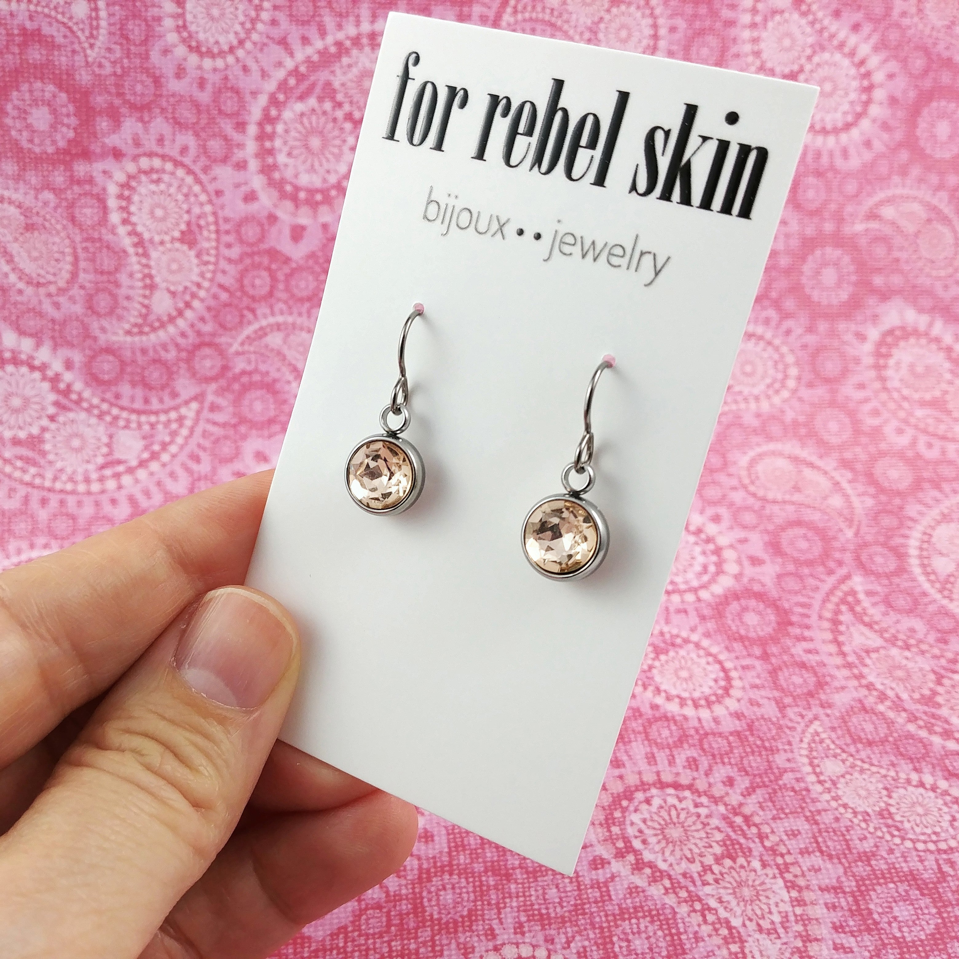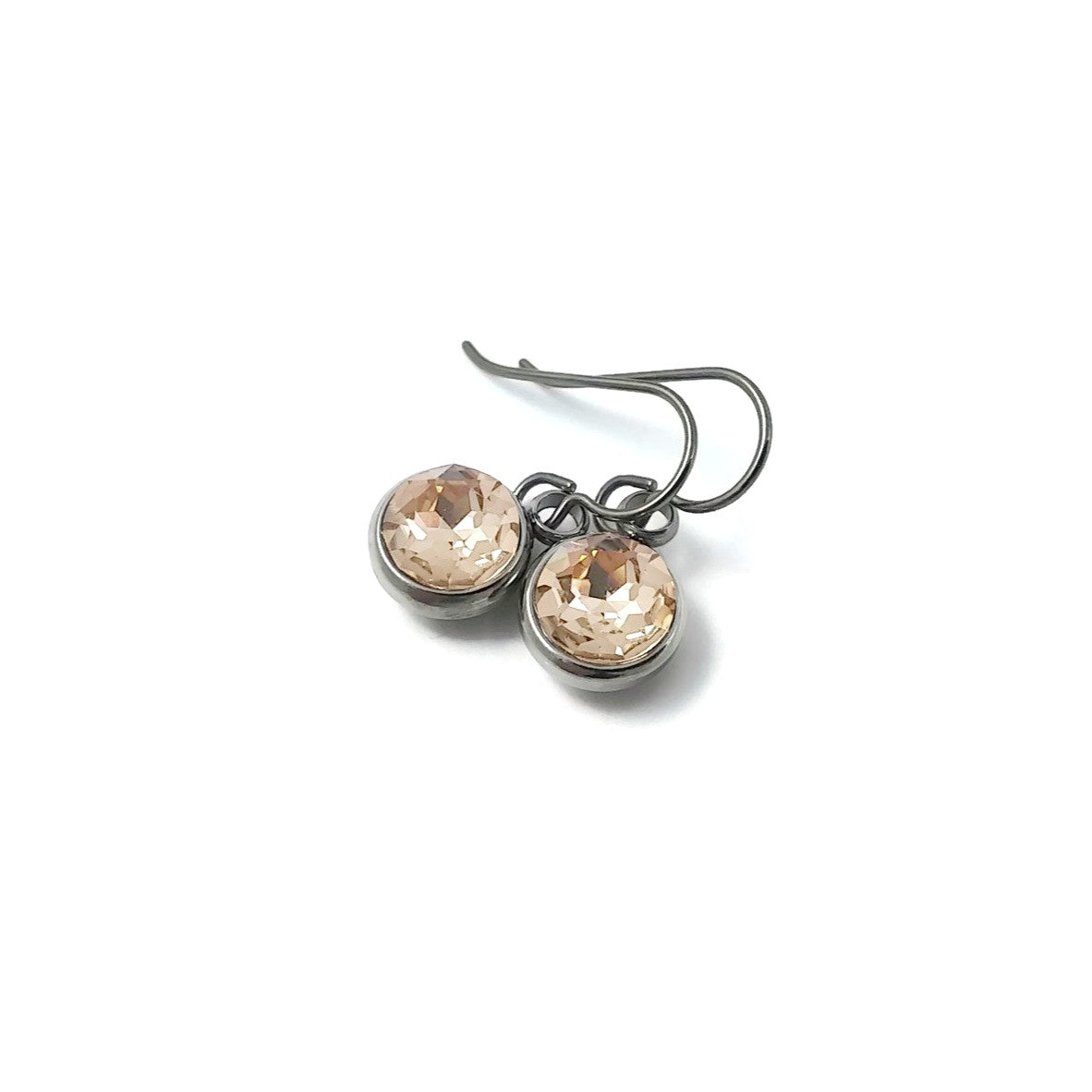 So beautiful earrings! You'll want to wear them every day. Very fashionable with this champagne peach rhinestone faceted pendant.