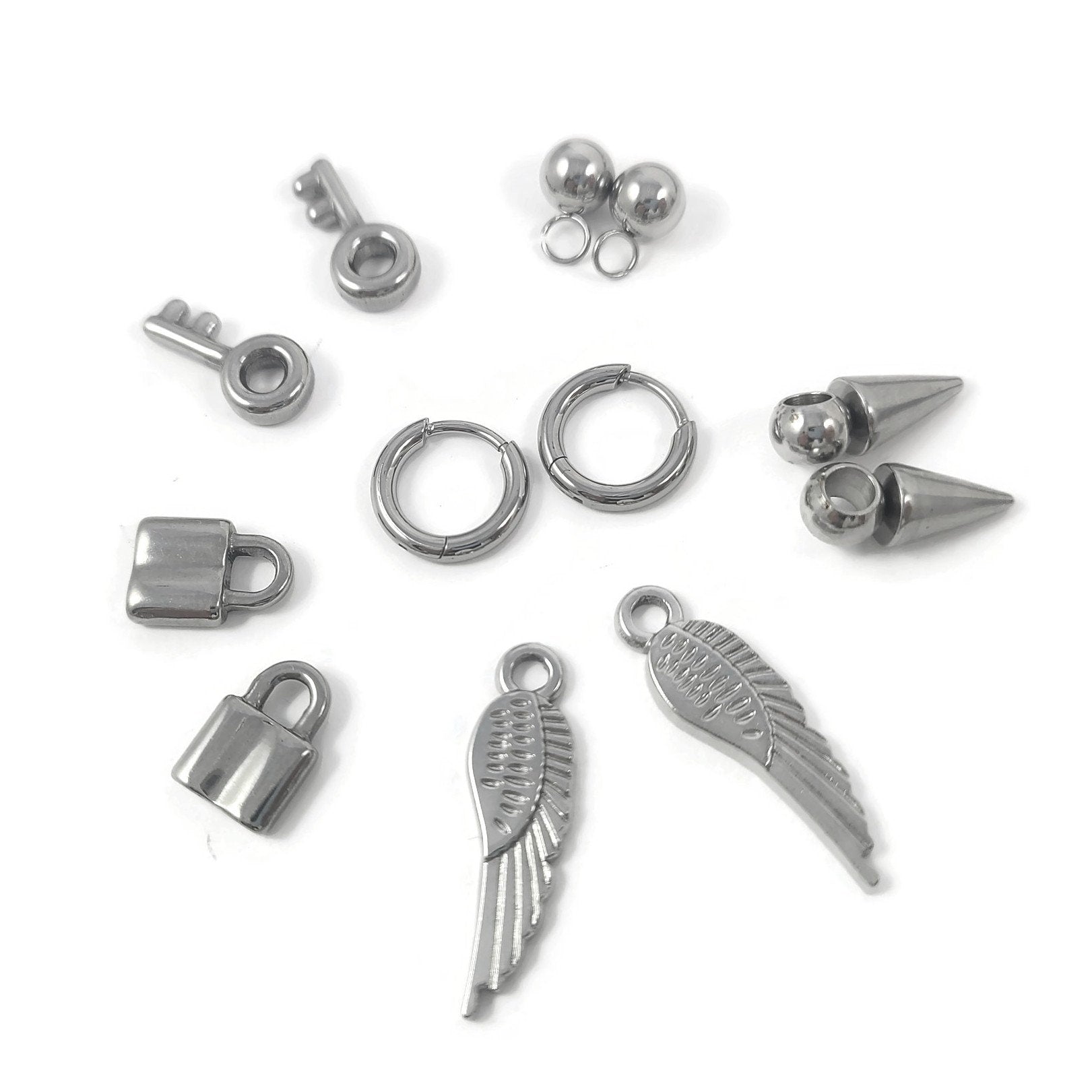 Pure natural titanium huggie hoop earrings, with a lovely choice of stainless steel charms. Sold as a pair.