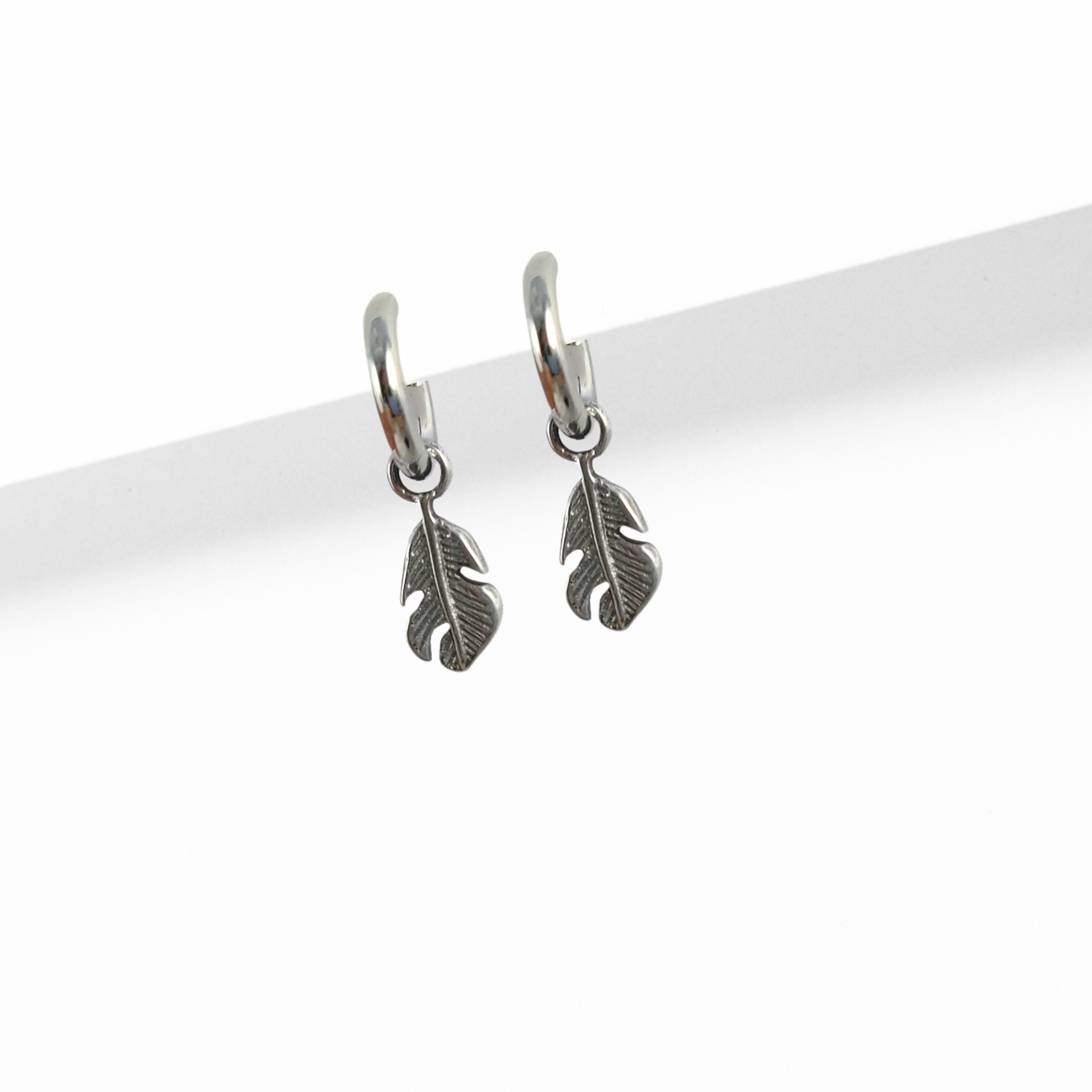 Feather earring charms with Titanium huggie hoops