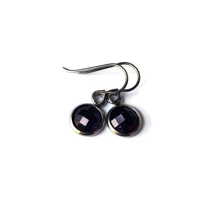 Purple glitter faceted titanium stud earrings