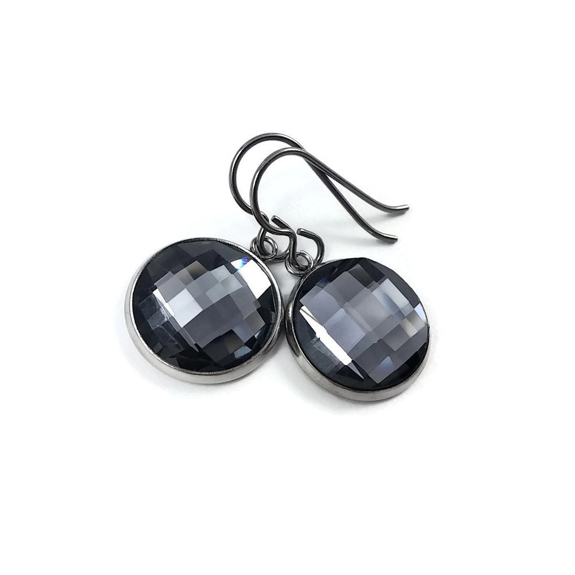 Grey rhinestone faceted dangle titanium earrings