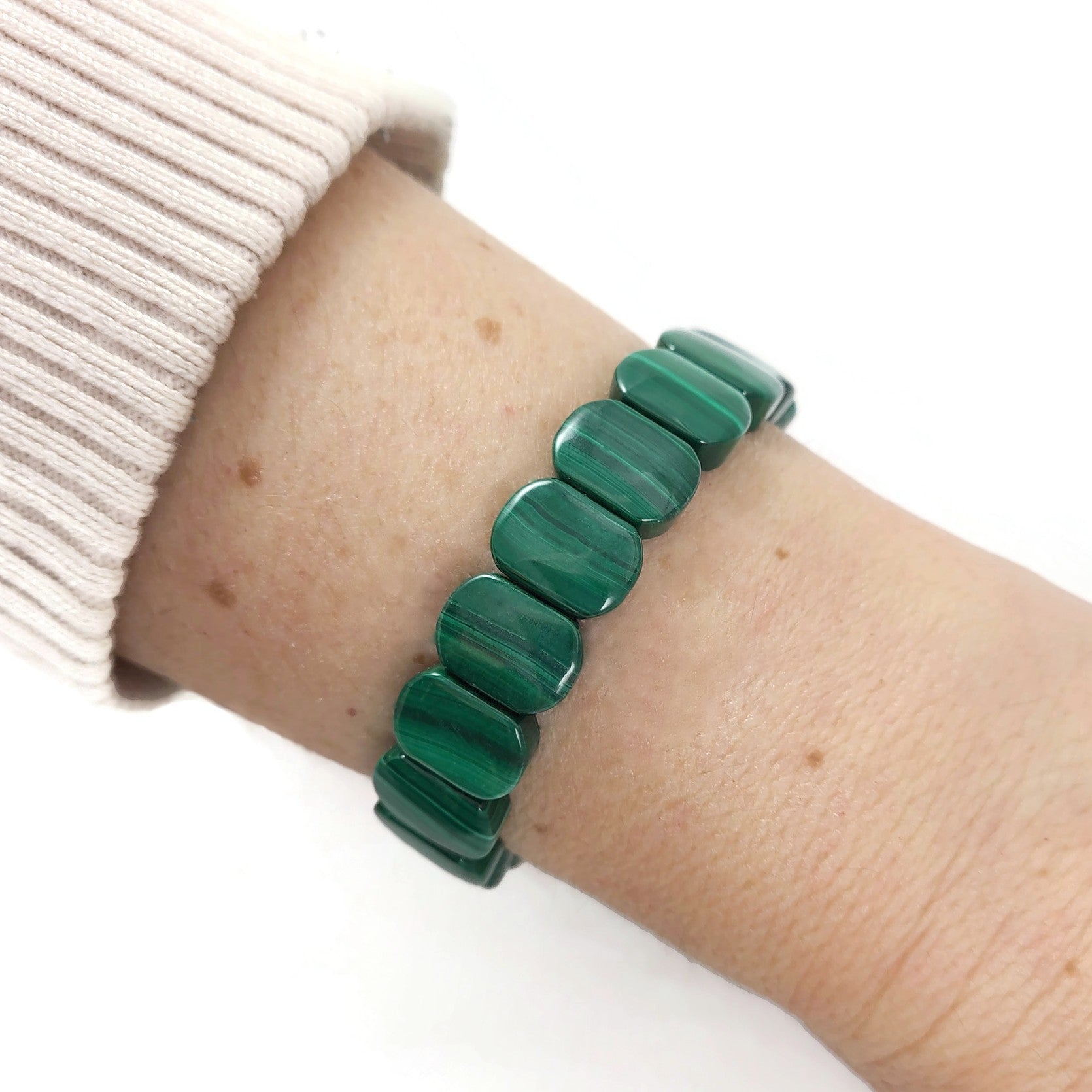 Step into a space of deep healing, transformation, and empowered intuition with the Malachite Gemstone Stretch Bracelet. Often called the "Stone of Transformation," malachite is cherished for its protective energy, its ability to absorb negativity, and its supportive role during times of growth and change.