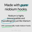Pure niobium ear wires. Niobium is 100% hypoallergenic and will not tarnish. This metal is a safe choice for anyone with metal allergies. Niobium is highly biocompatible just like titanium.