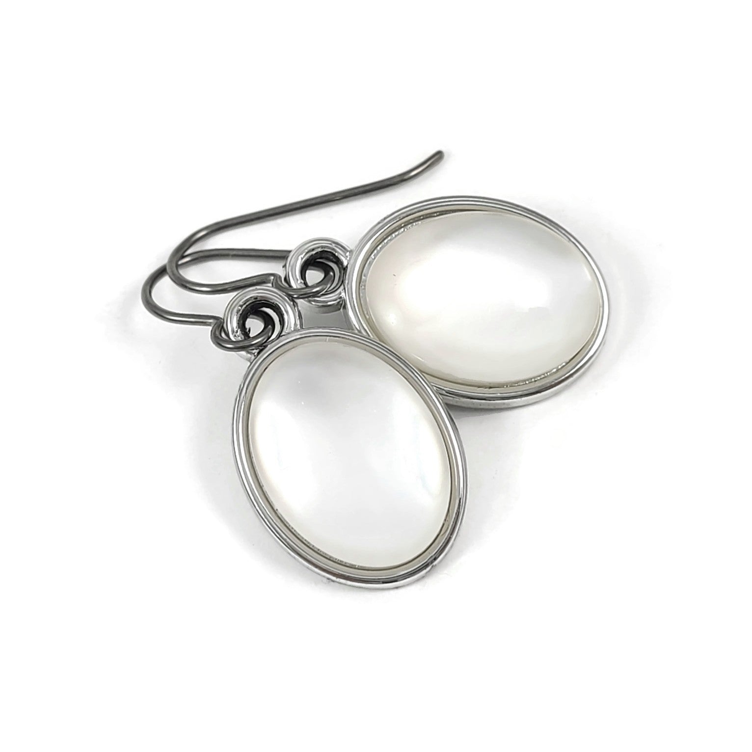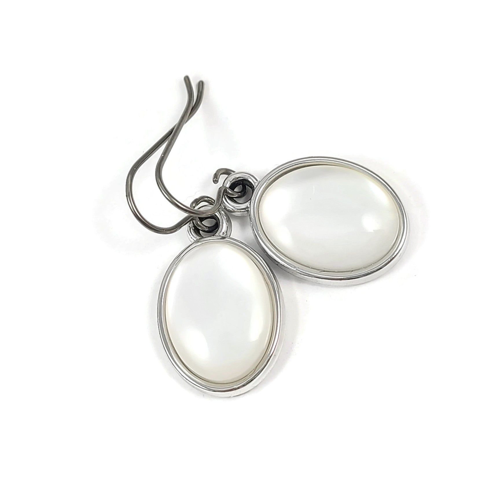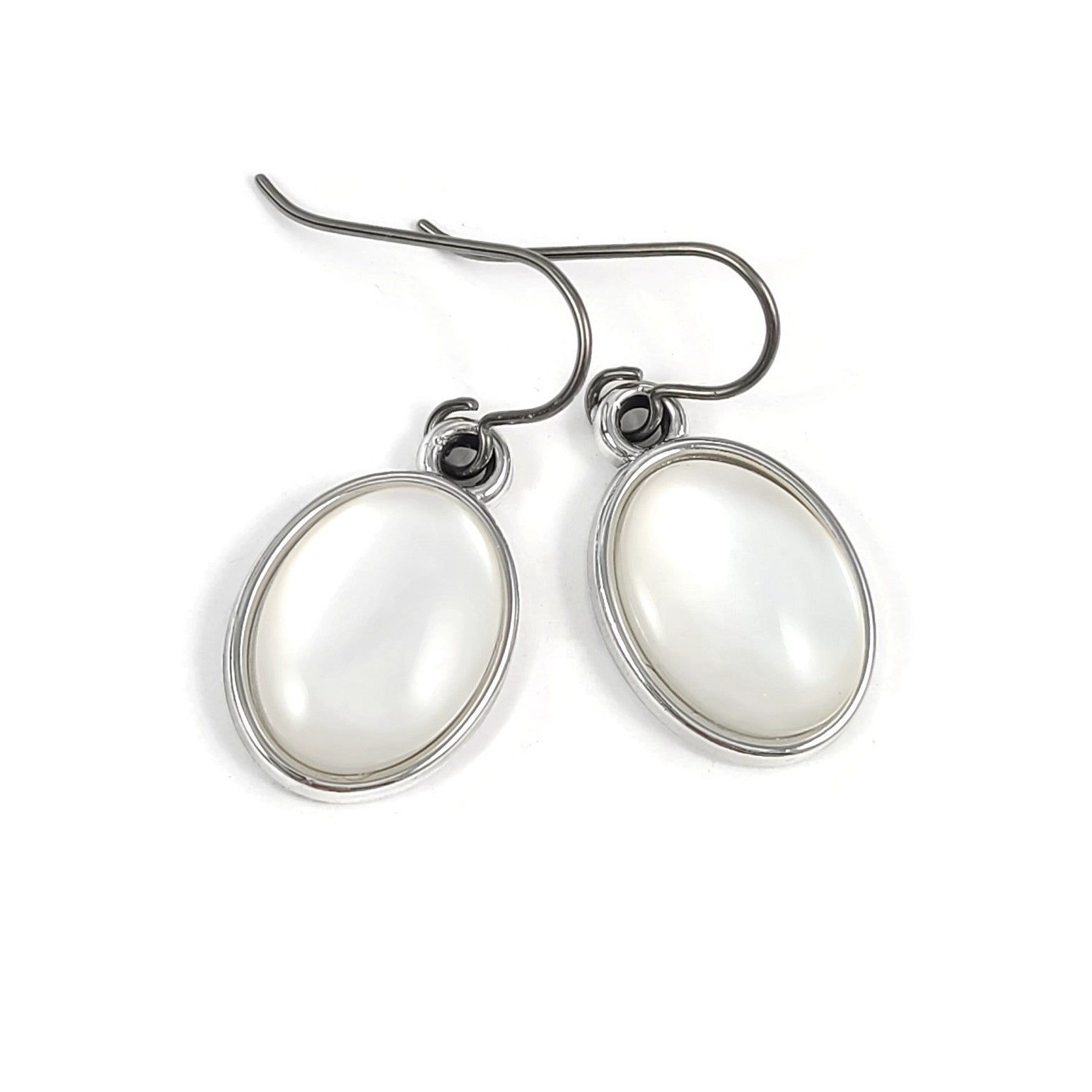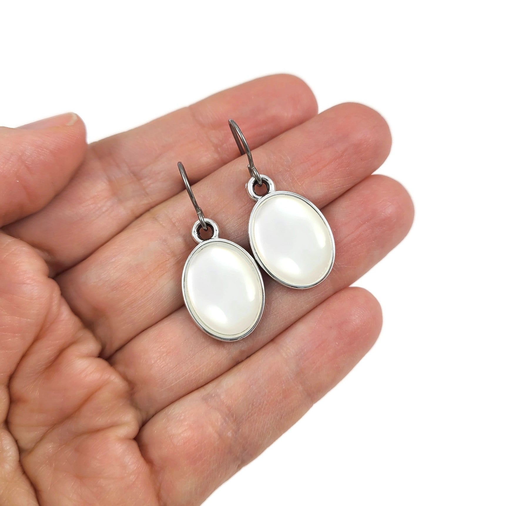 Silver star with glitter, sequins, paillette dangle titanium earrings