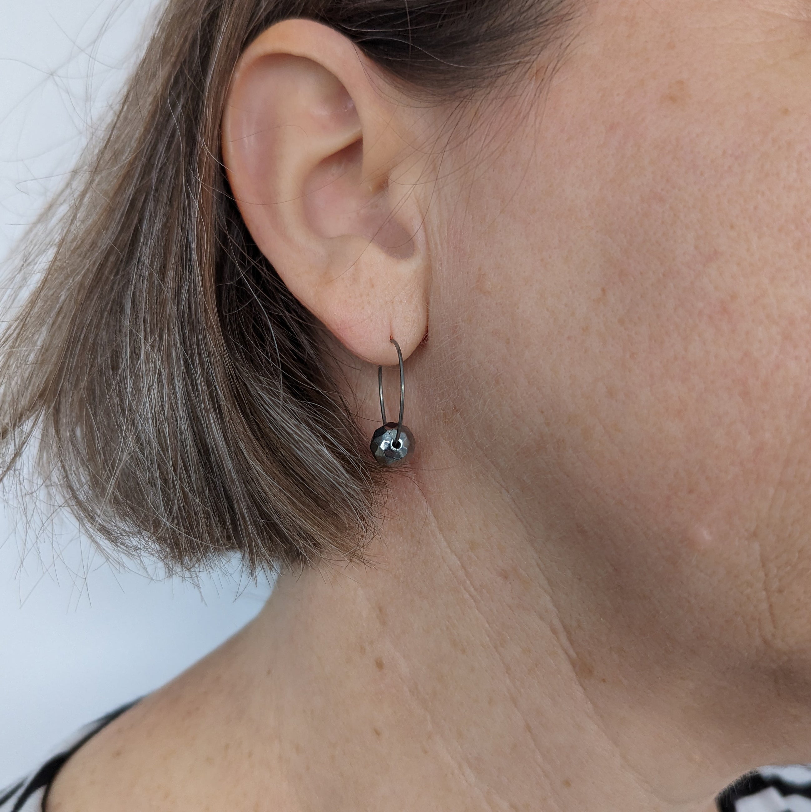 Druzy titanium minimalist hoop earrings