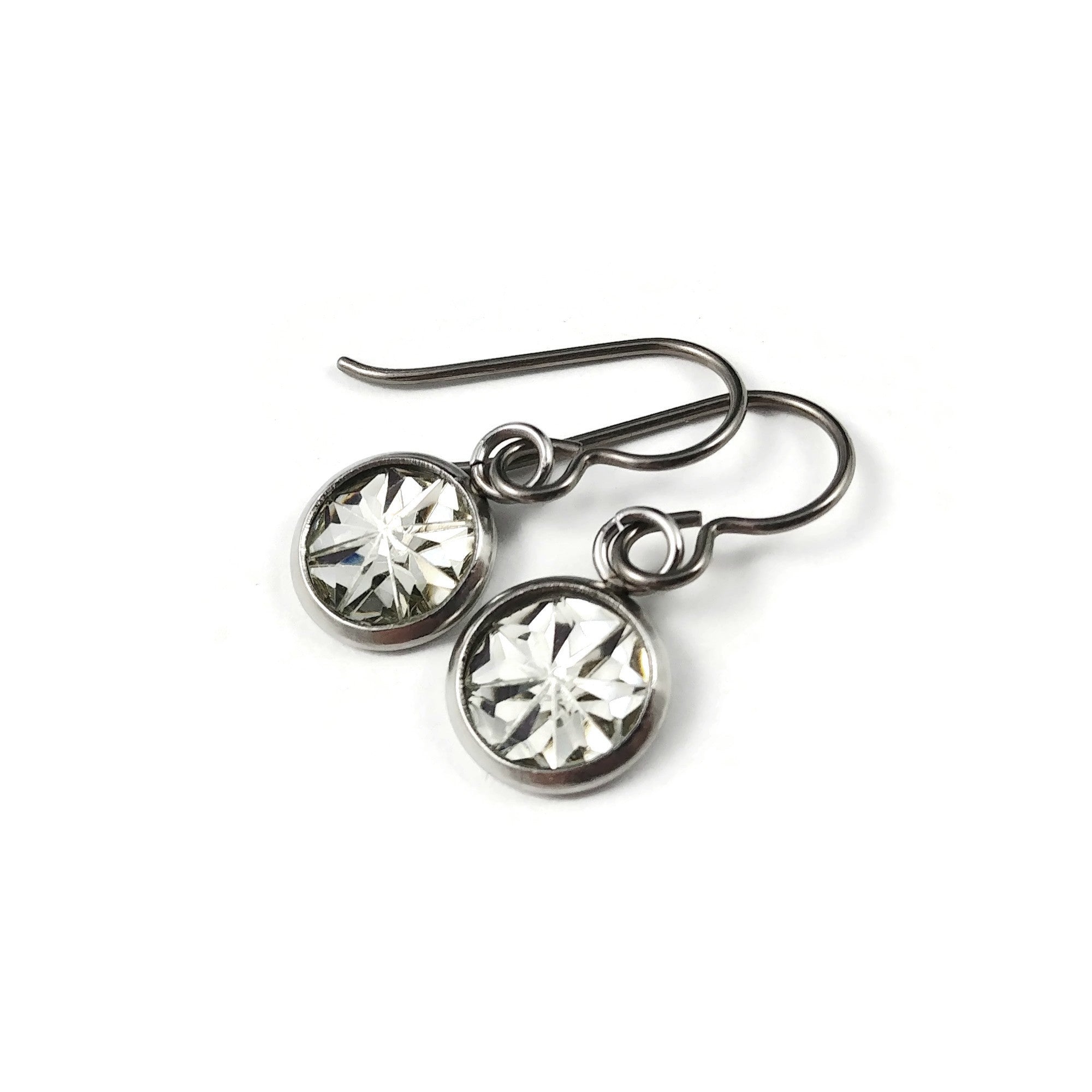 Clear faceted dangle titanium earrings