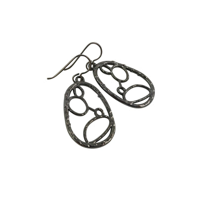 Organic oval gunmetal dangle titanium earrings
