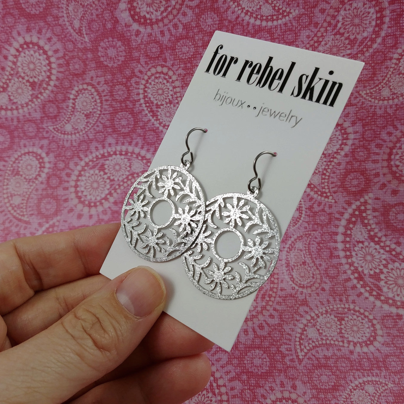 So beautiful earrings! You'll want to wear them every day. Very fashionable with this delicate glitter round pendant.