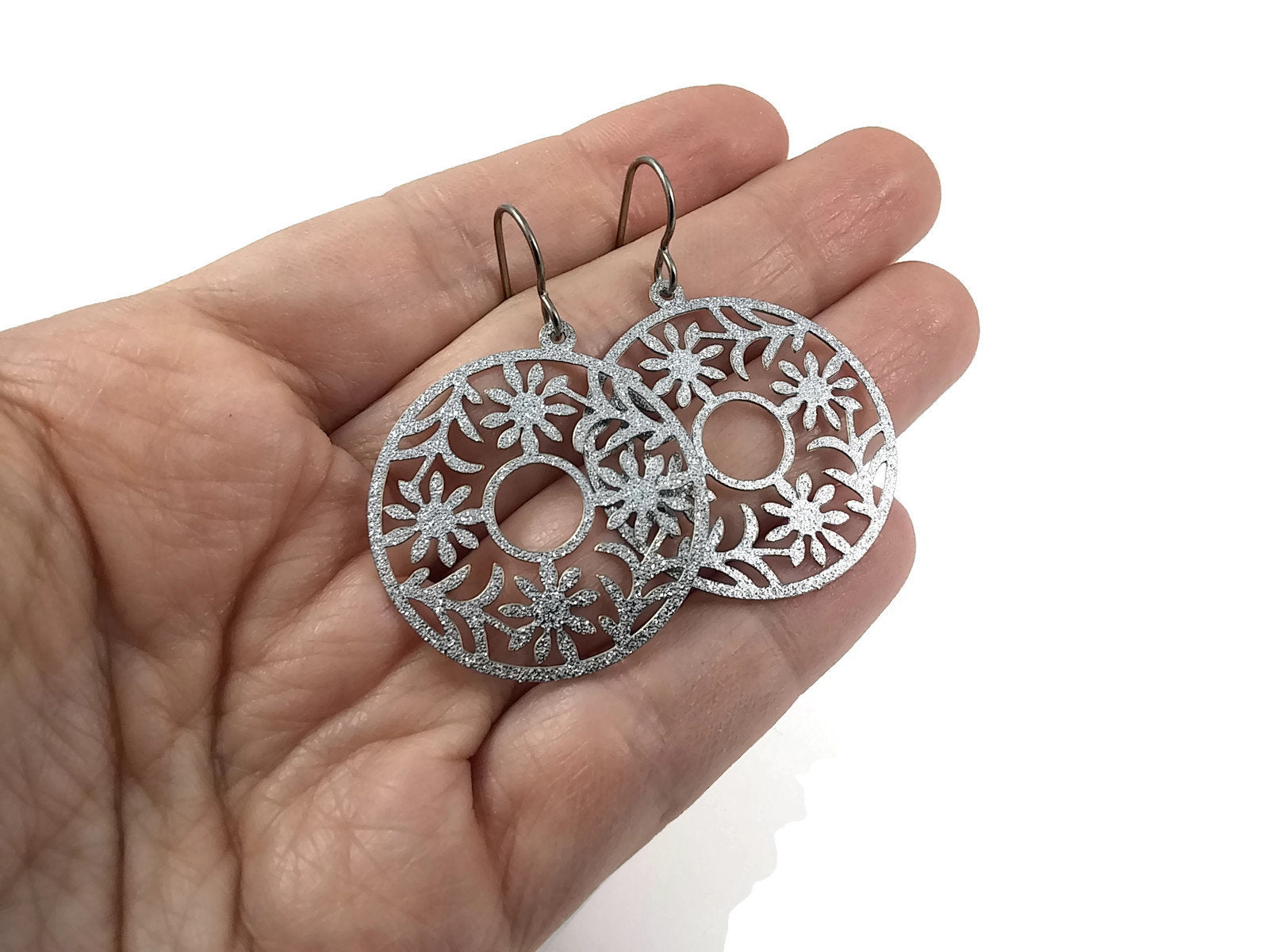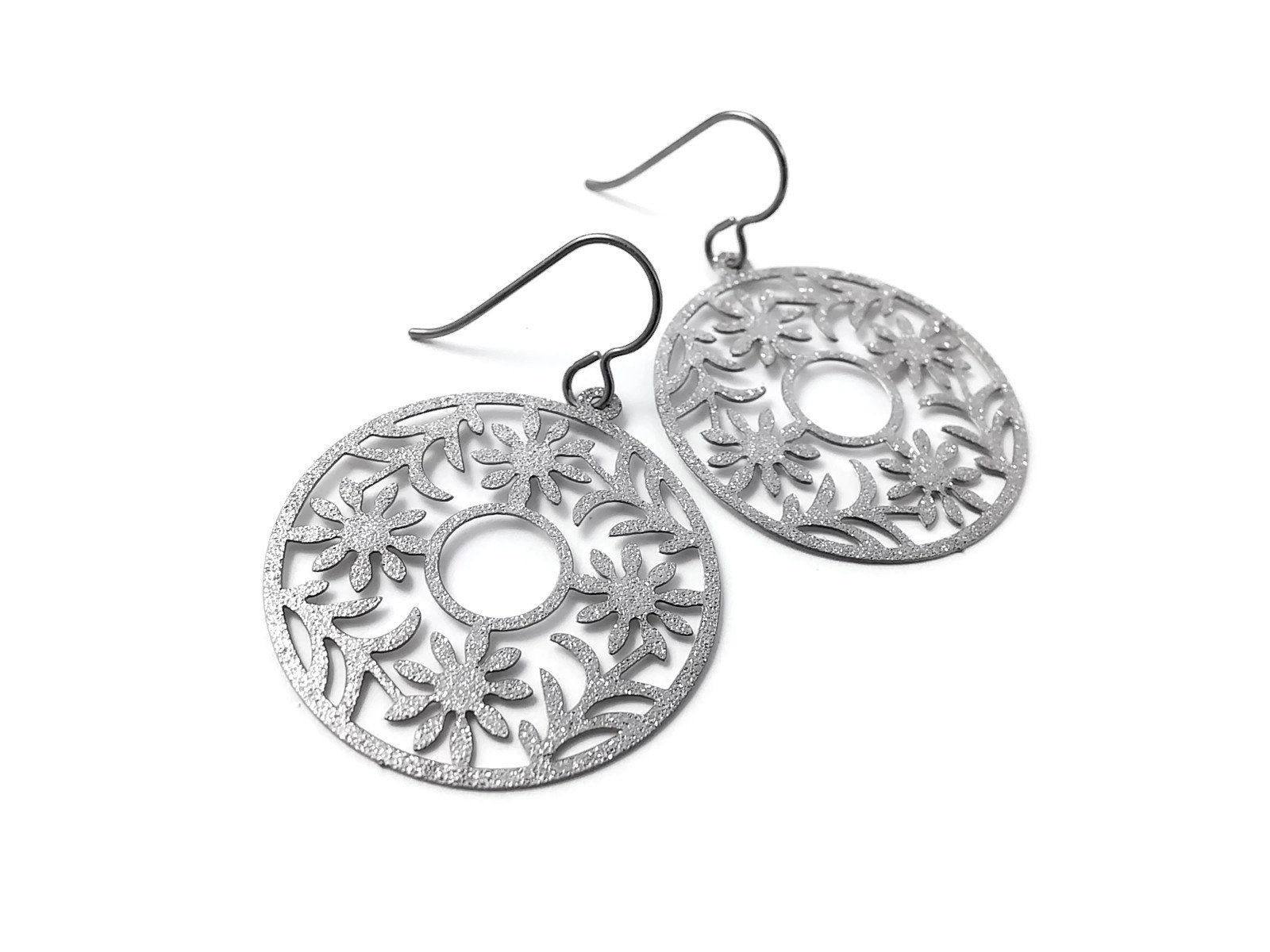 These pendants metal earrings are extremely light and easy to wear. I've assembled with pure titanium ear wires. Titanium is 100% hypoallergenic and will not produce skin irritation or discoloration.