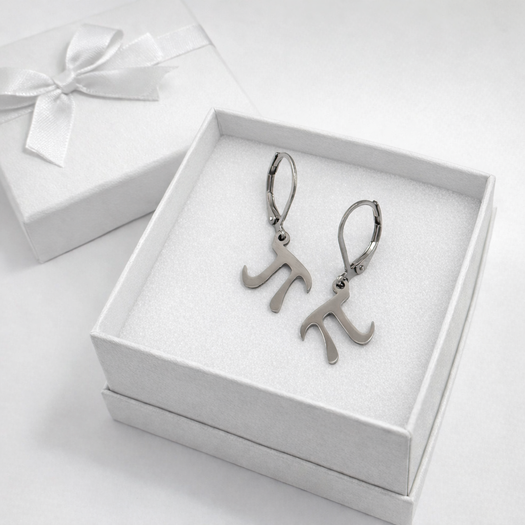 Celebrate a love of math, science, and all things geek‑chic with these Pi symbol dangle earrings. Designed with surgical steel leverback hooks and a stainless‑steel charm, they’re lightweight, hypoallergenic, and safe for sensitive ears.