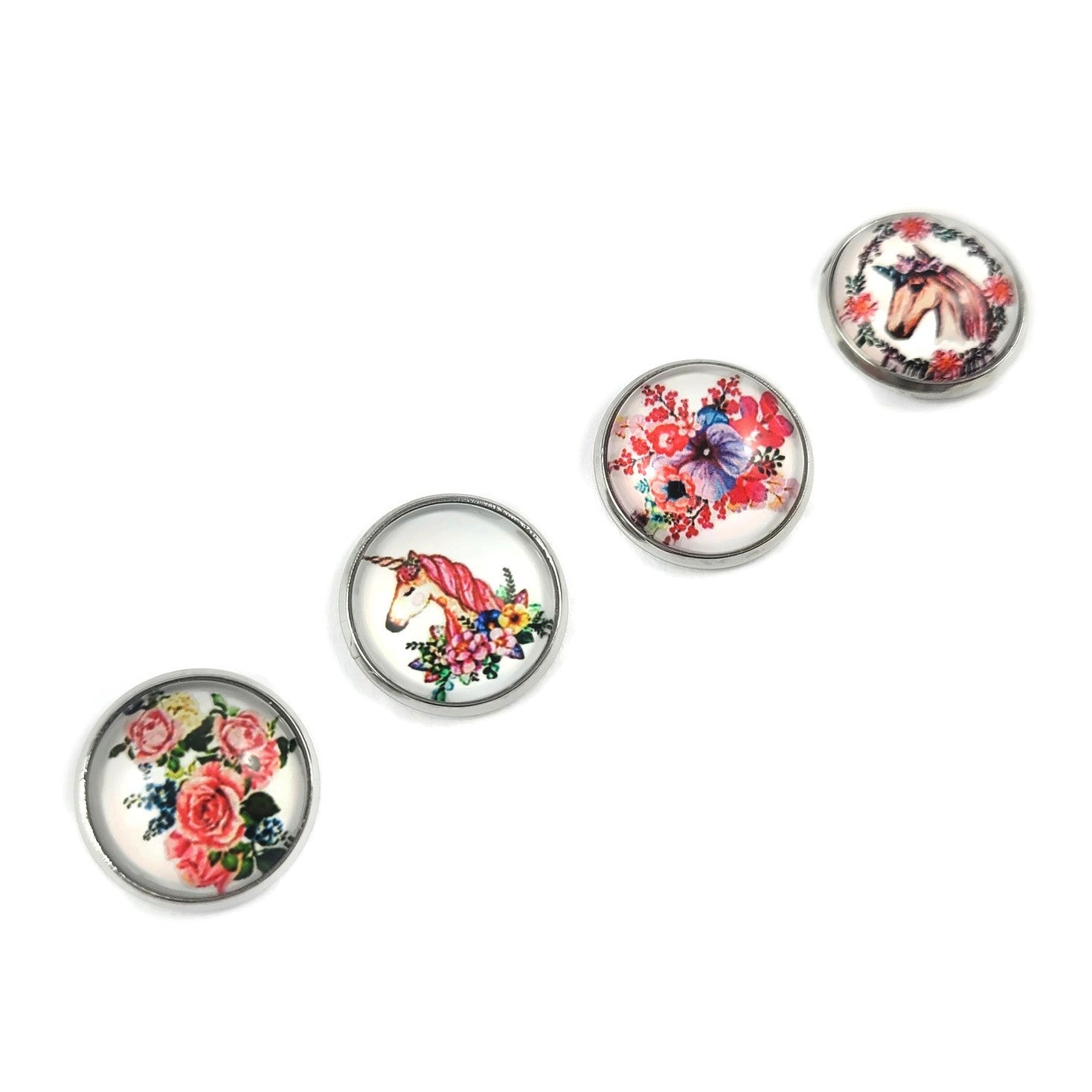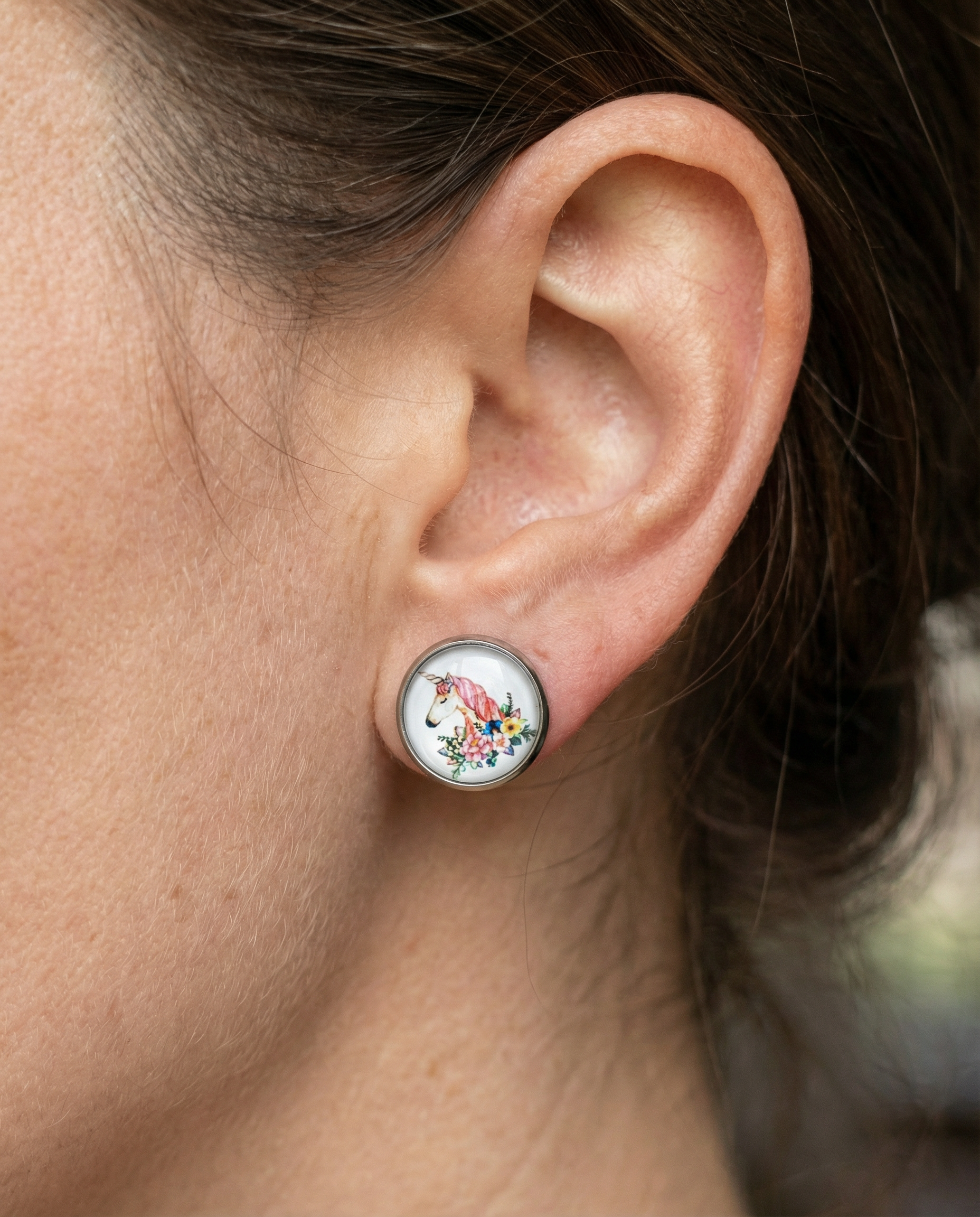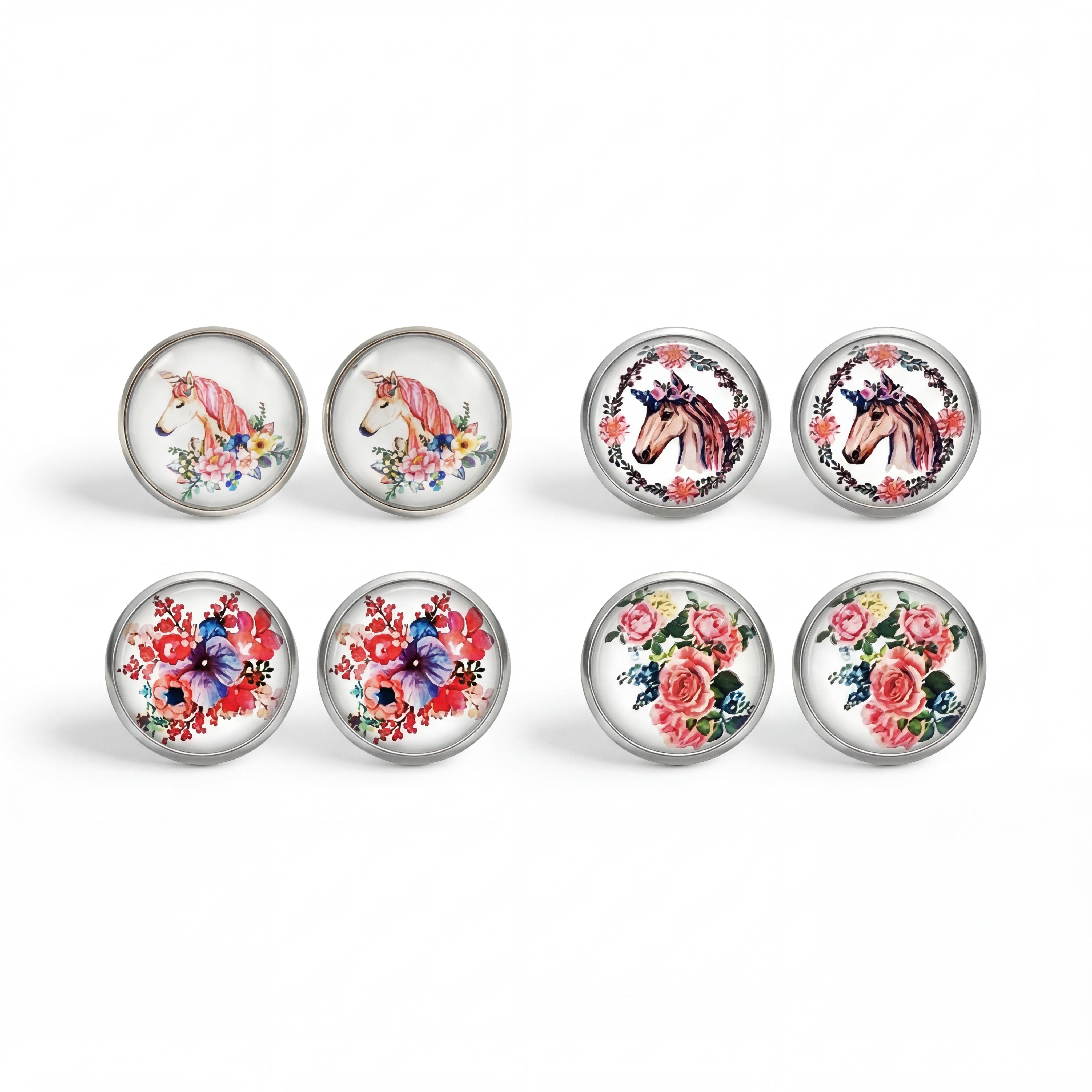 Flower and unicorn surgical steel stud earrings