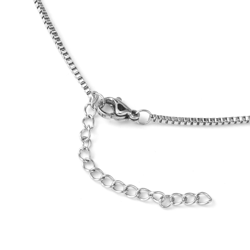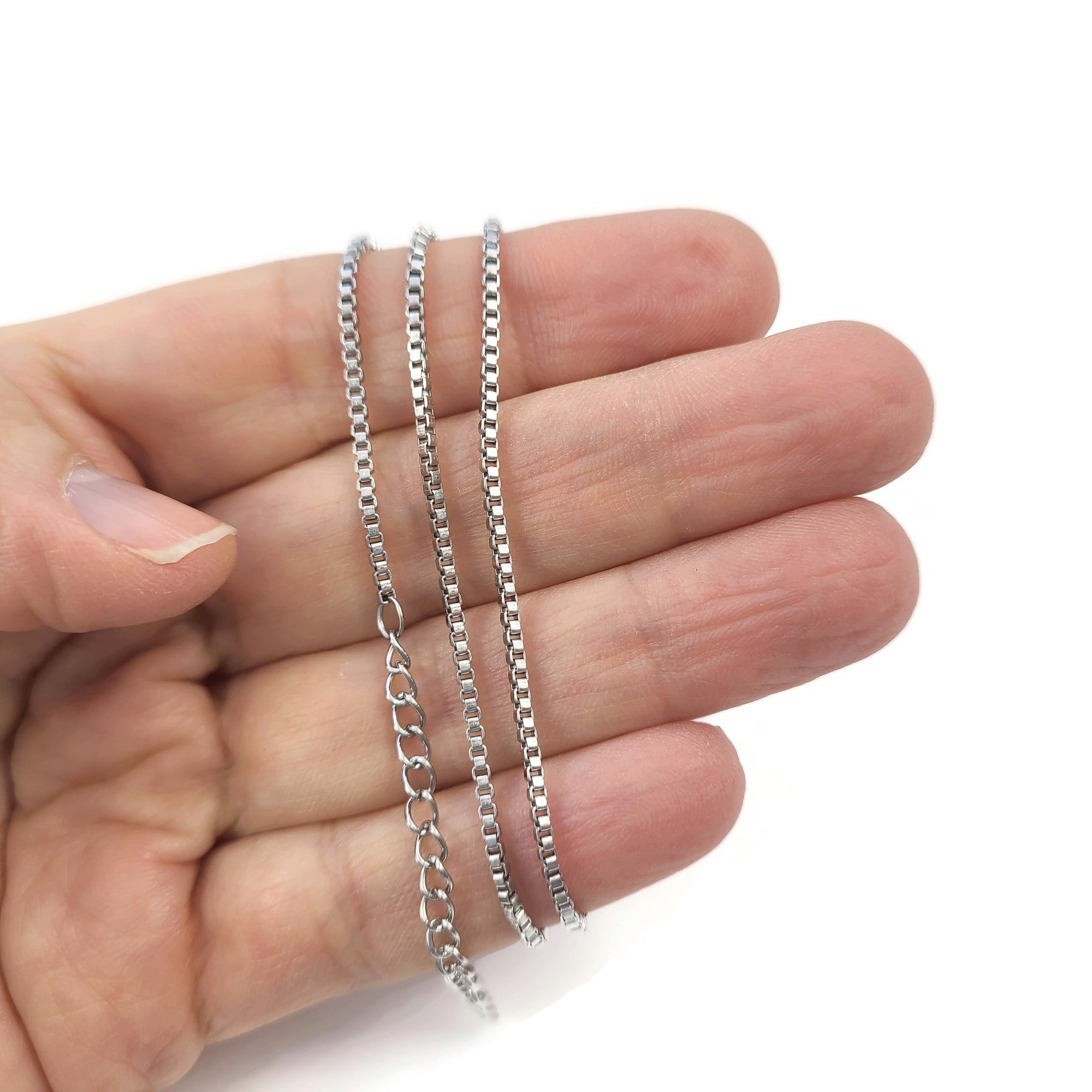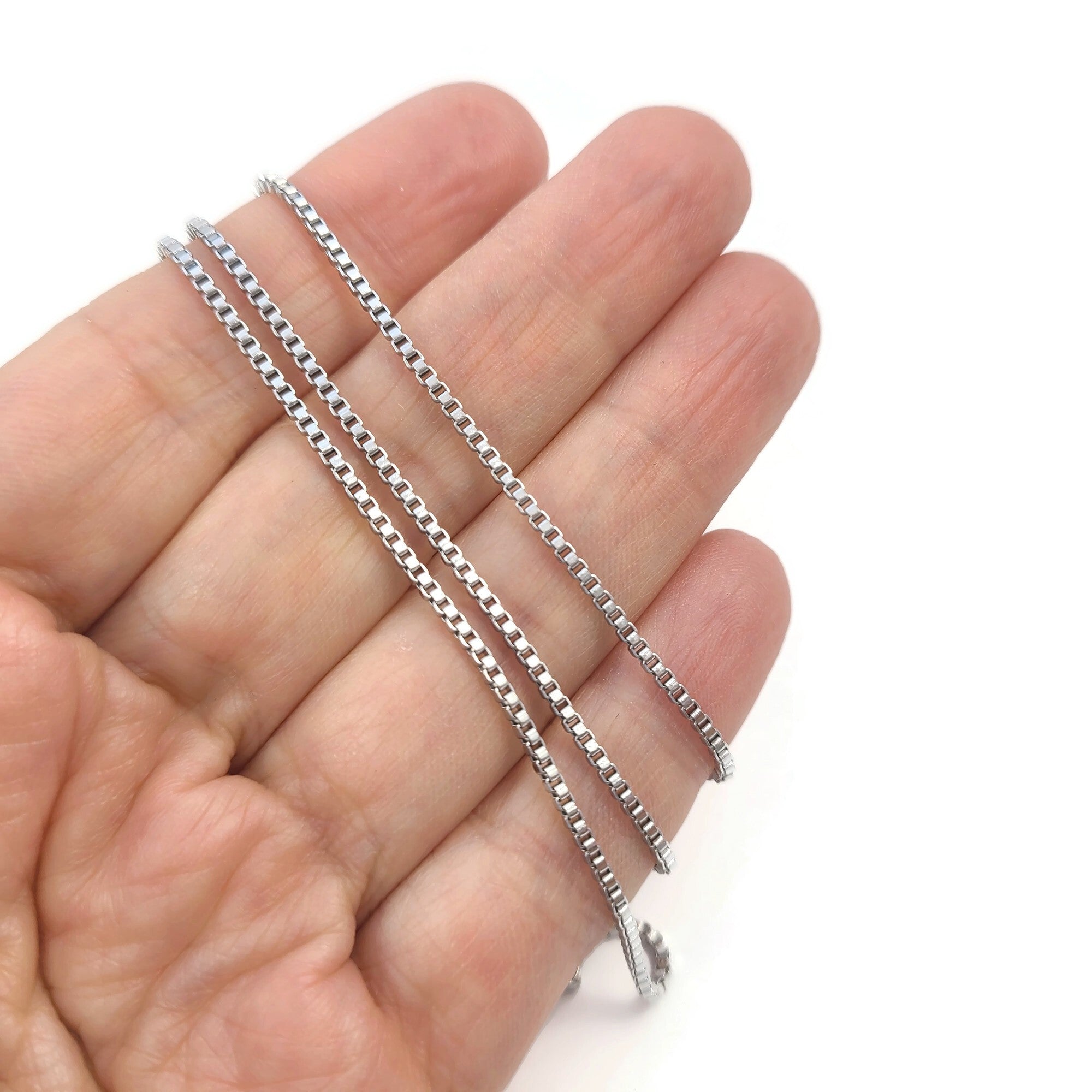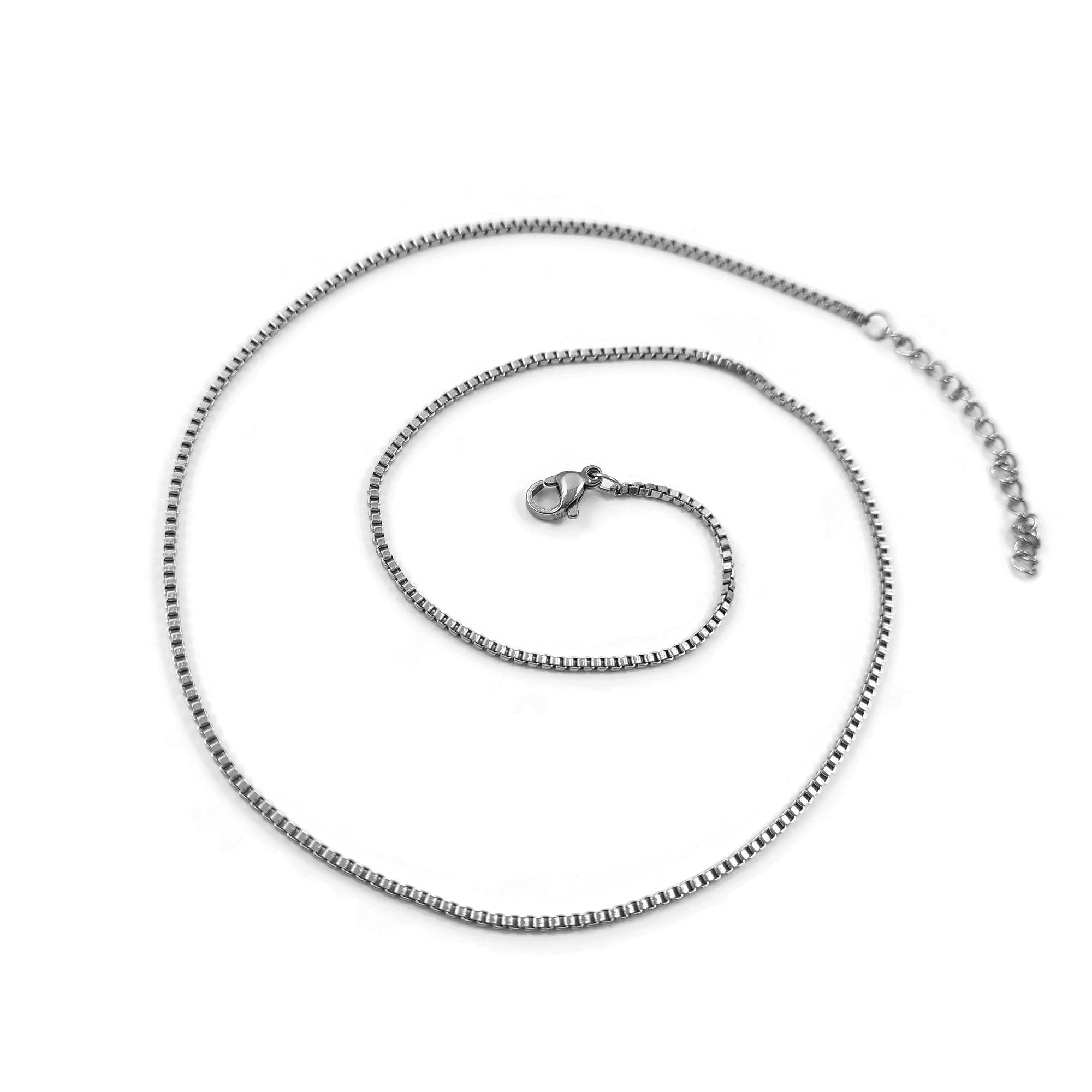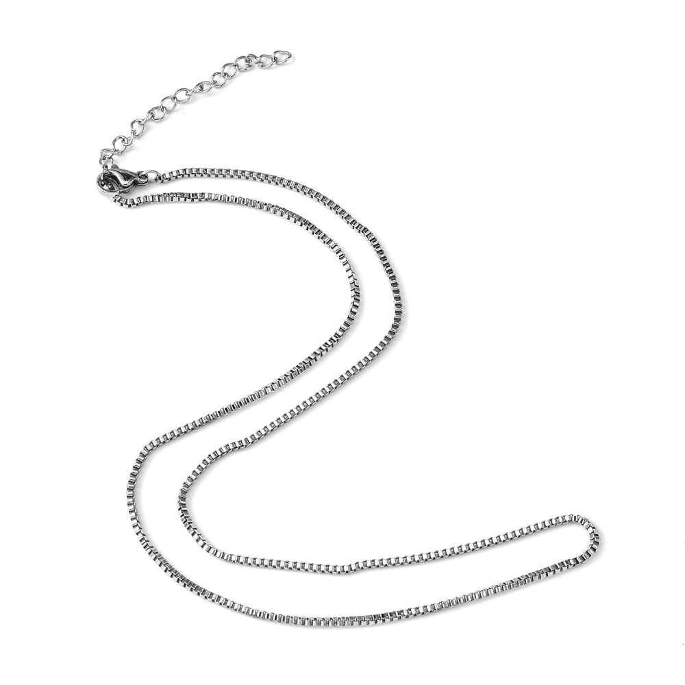 The perfect everyday chain necklace! 1.5mm fine venetian box chain, made of hypoallergenic surgical steel that is gentle on the skin and perfect for those with sensitive skin.