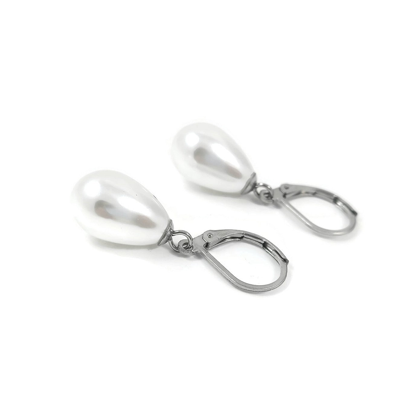 Each earring features a lustrous acrylic imitation pearl delicately suspended from a hypoallergenic stainless steel bail. They can be worn as bridal earrings, bridesmaid gifts, or wedding earrings.