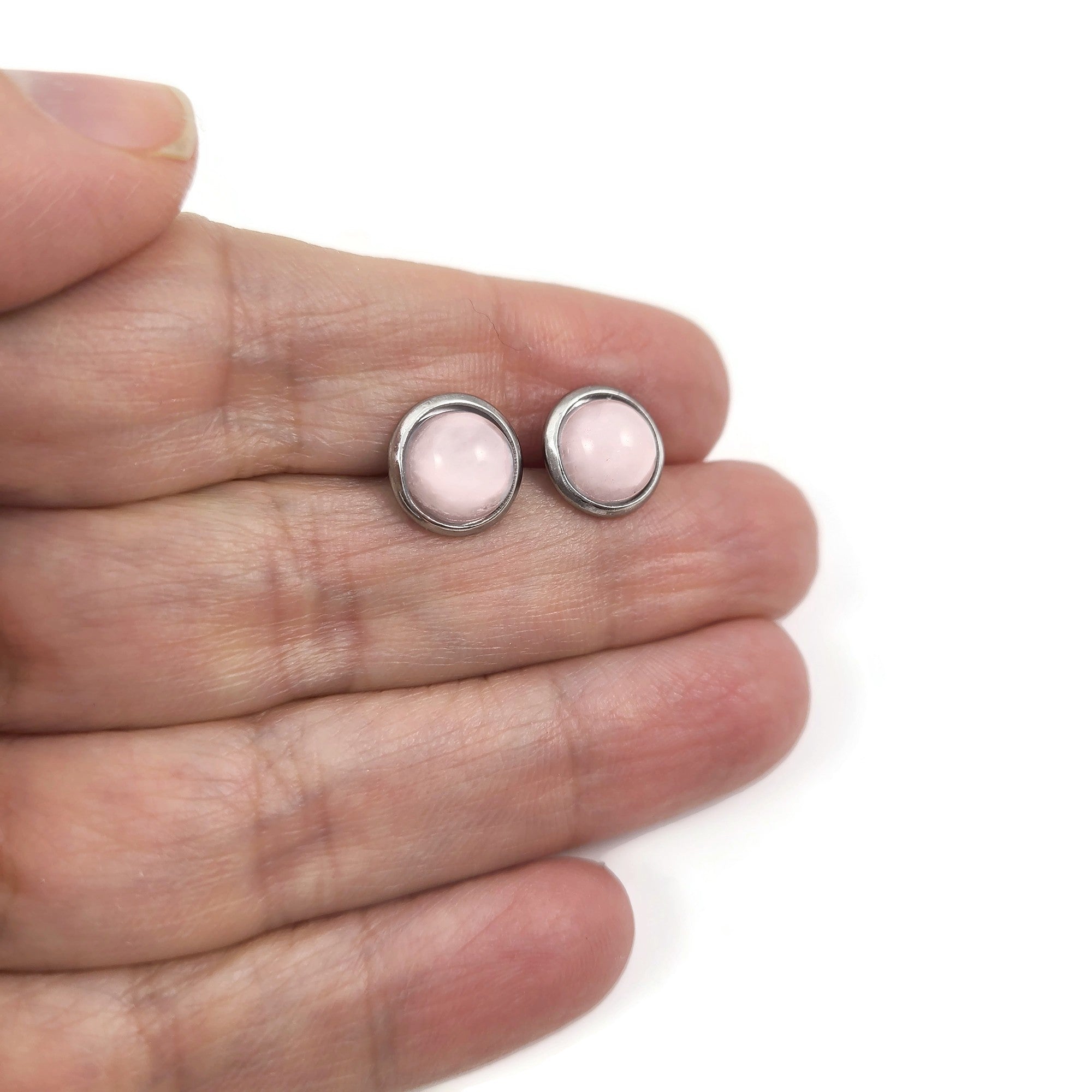 - Natural Beauty: Each earring features a polished rose quartz cabochon, known for its delicate white-pink tones and association with love and harmony. Perfect for adding a subtle pop of glow to any outfit.