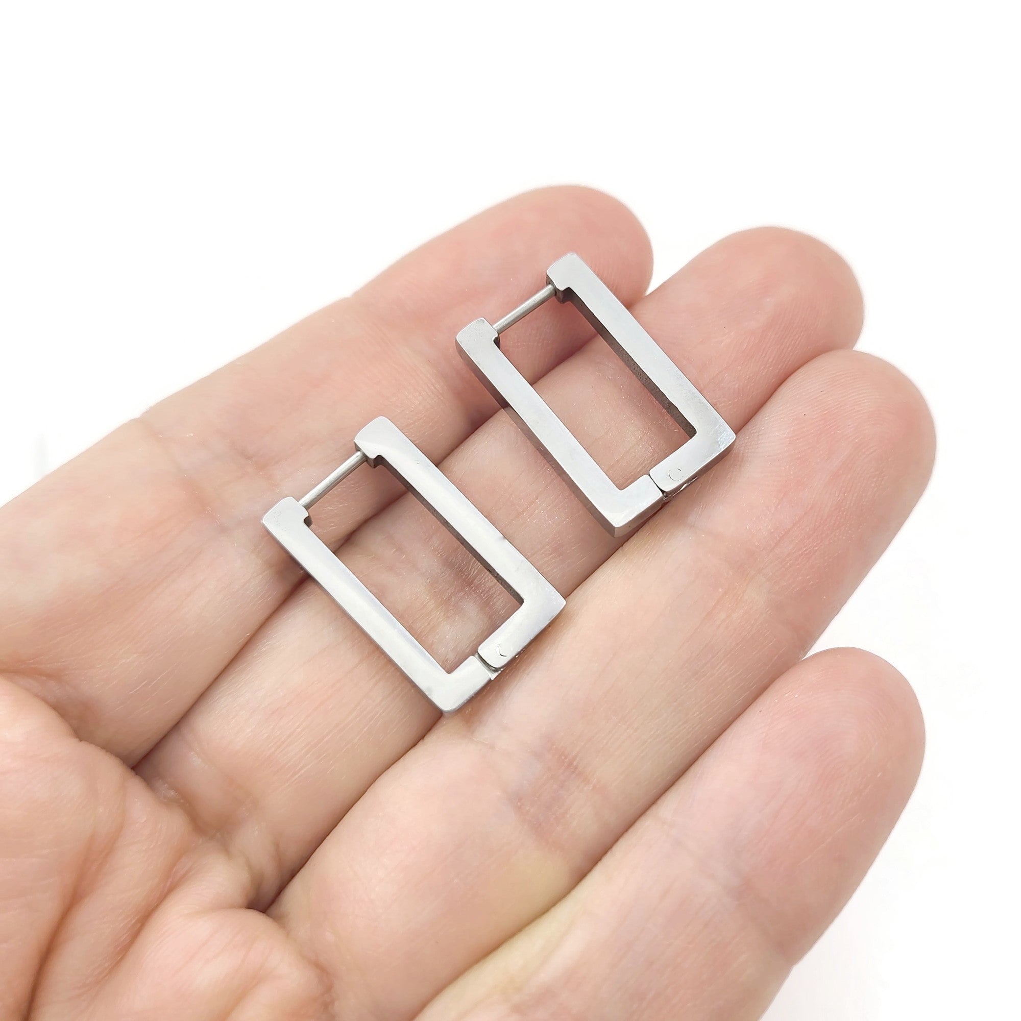 These are hoops that mean business, with a modern rectangle silhouette (20mm x 12mm x 3mm) that’s sleek enough for work, chill enough for weekends, and bold enough to make your look pop—without trying too hard. The 8 x11mm inside diameter gives just the right amount of dangle, while the 1mm pin keeps things comfy for most standard piercings.