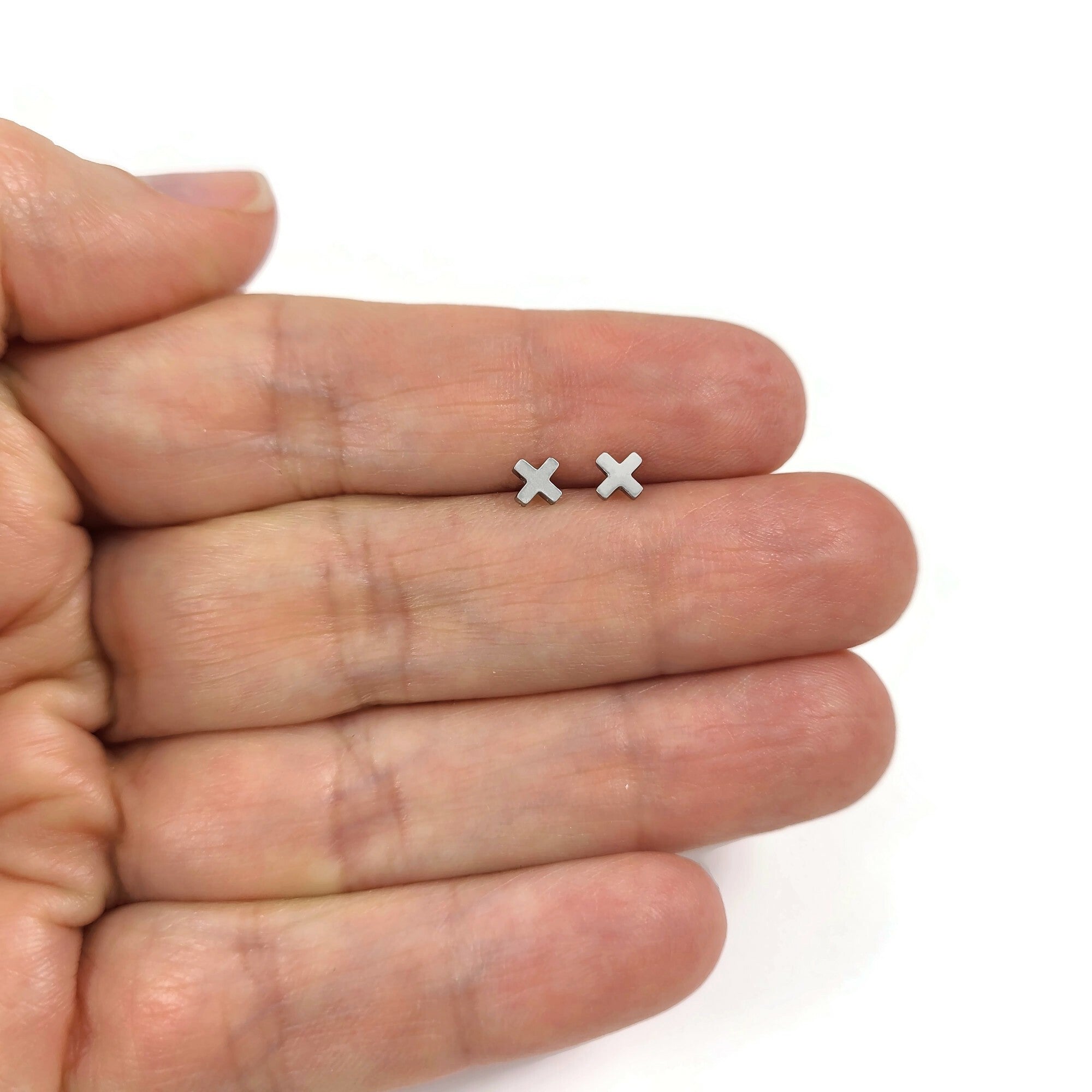 At just 4mm wide, these tiny X-shaped earrings add a subtle yet chic touch to any outfit. Perfect for both casual coffee dates and glamorous nights out. Sold by pair. 21 gauge pins.