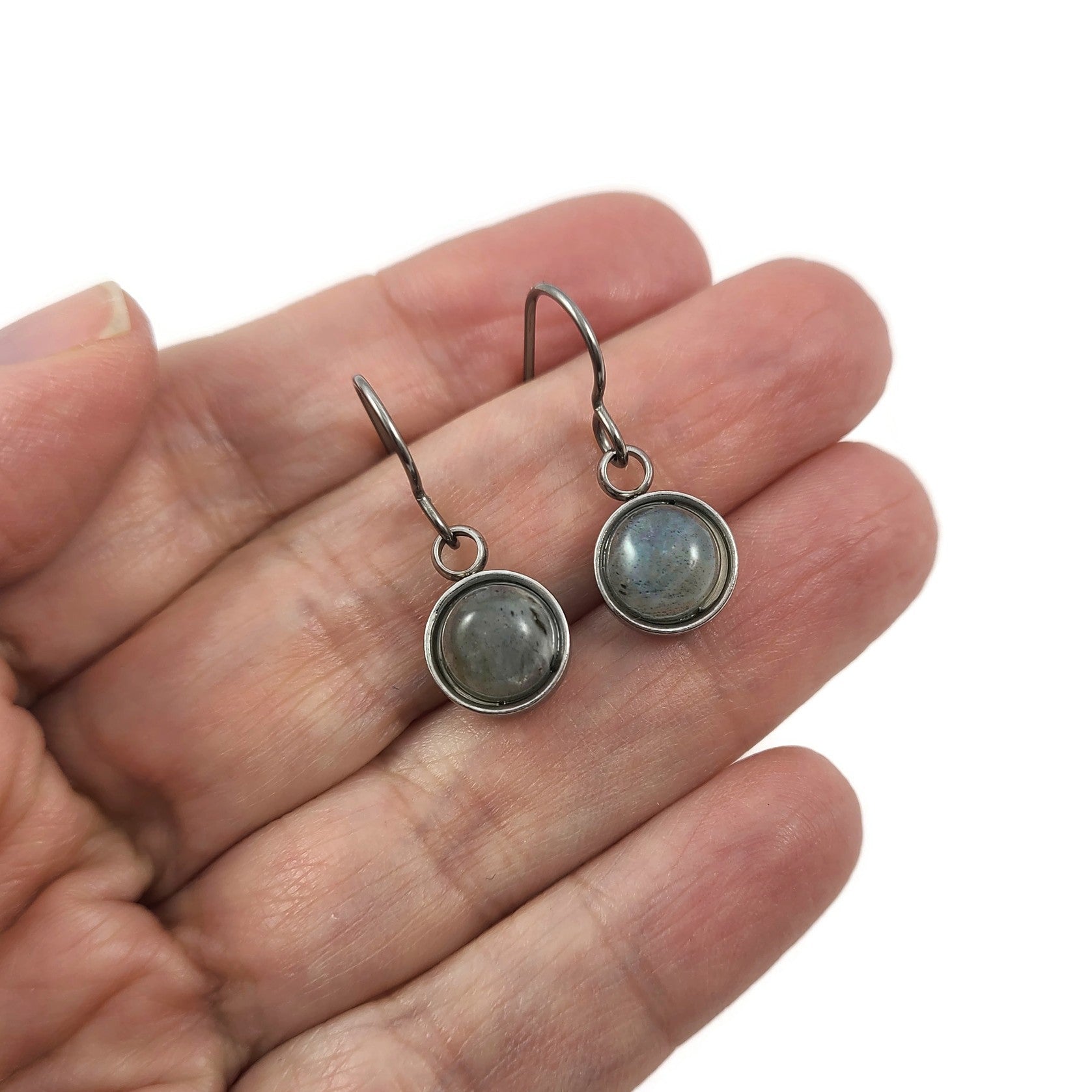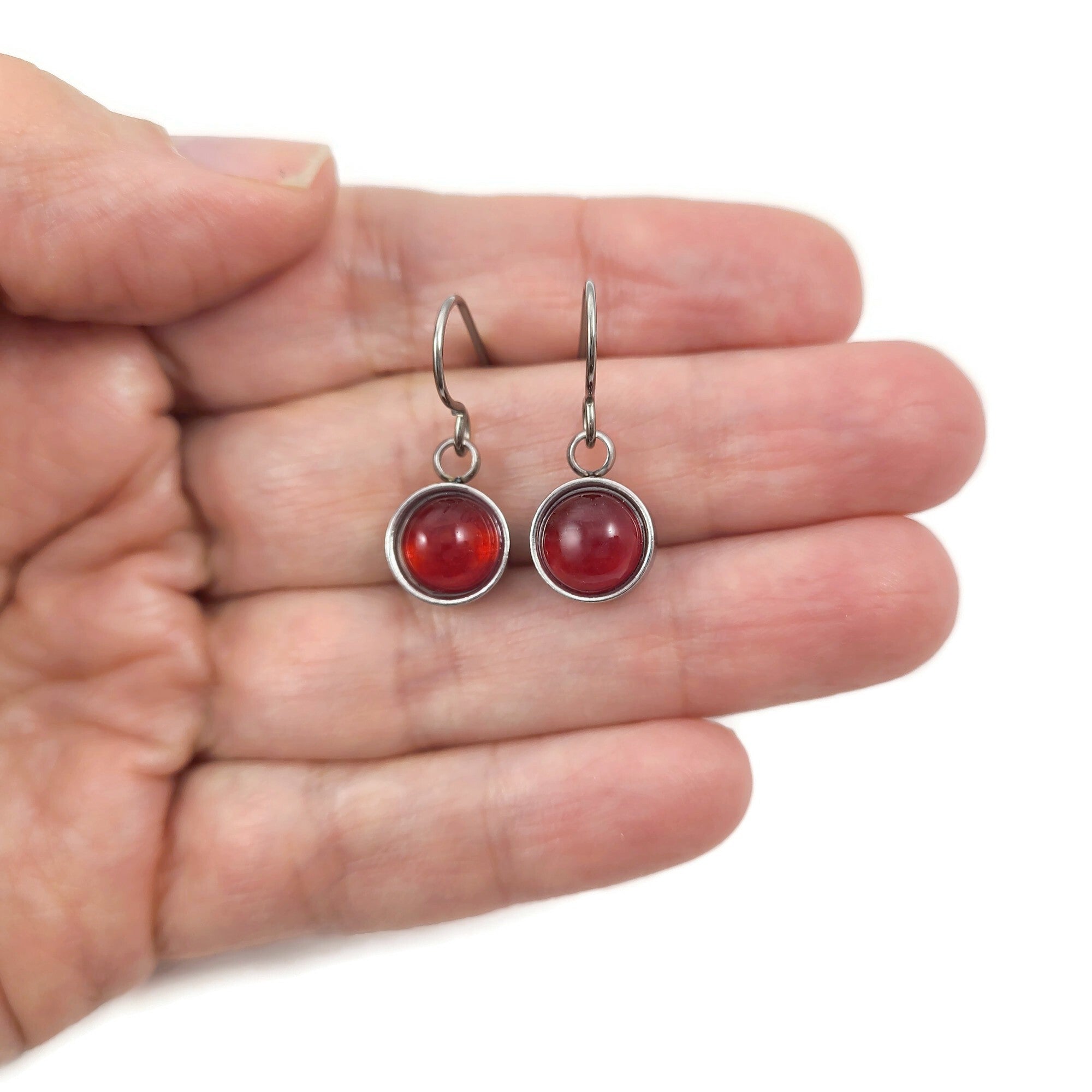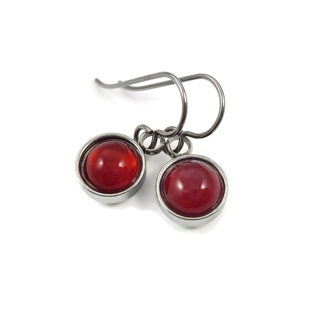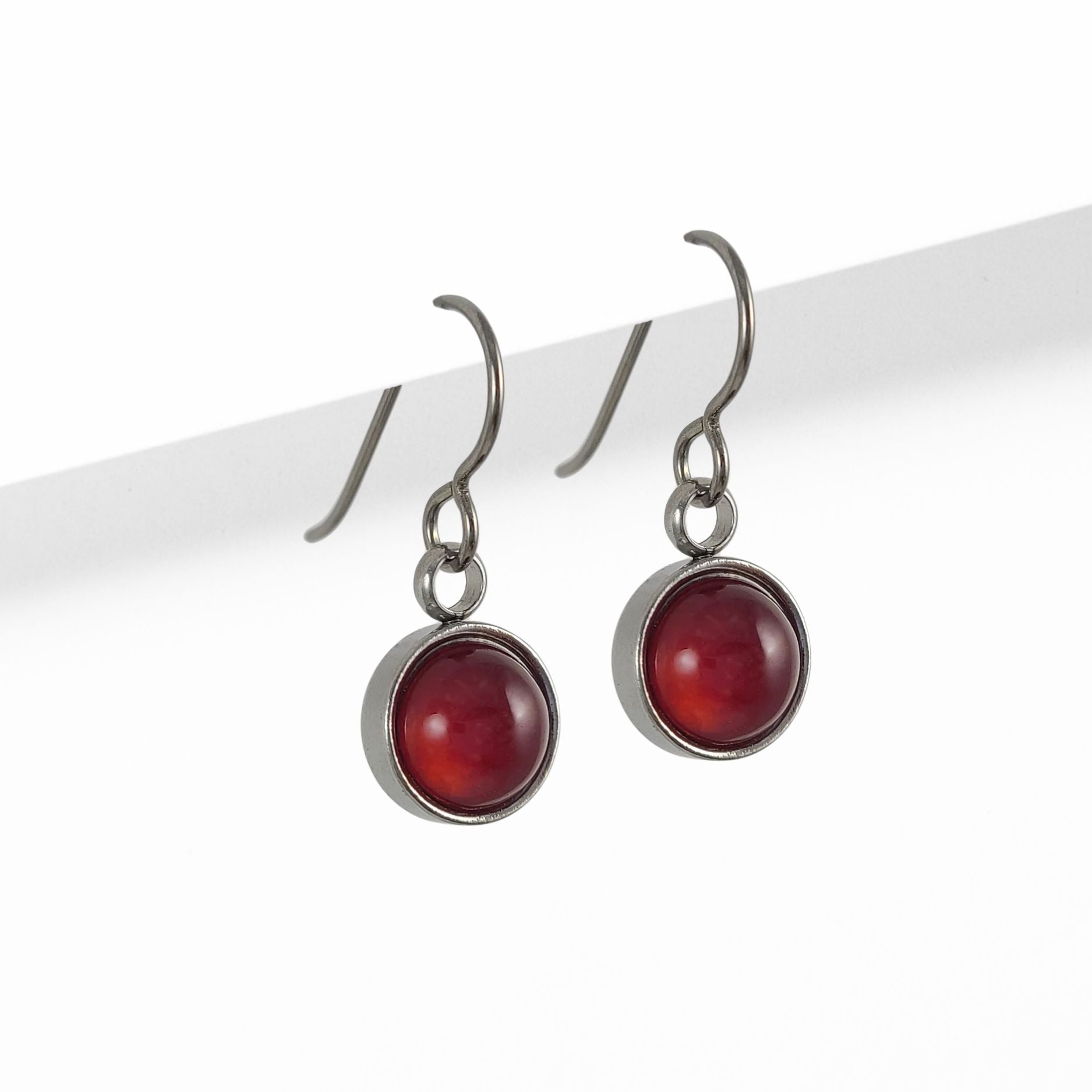 Hypoallergenic pure titanium earrings made with pure titanium ear wires (Grade 1, Commercially Pure Titanium with an F67 rating). Titanium is 100% hypoallergenic and will not produce skin irritation or discoloration. Unique collection of earrings featuring gemstone, crystal or glass pendants and cabochons.