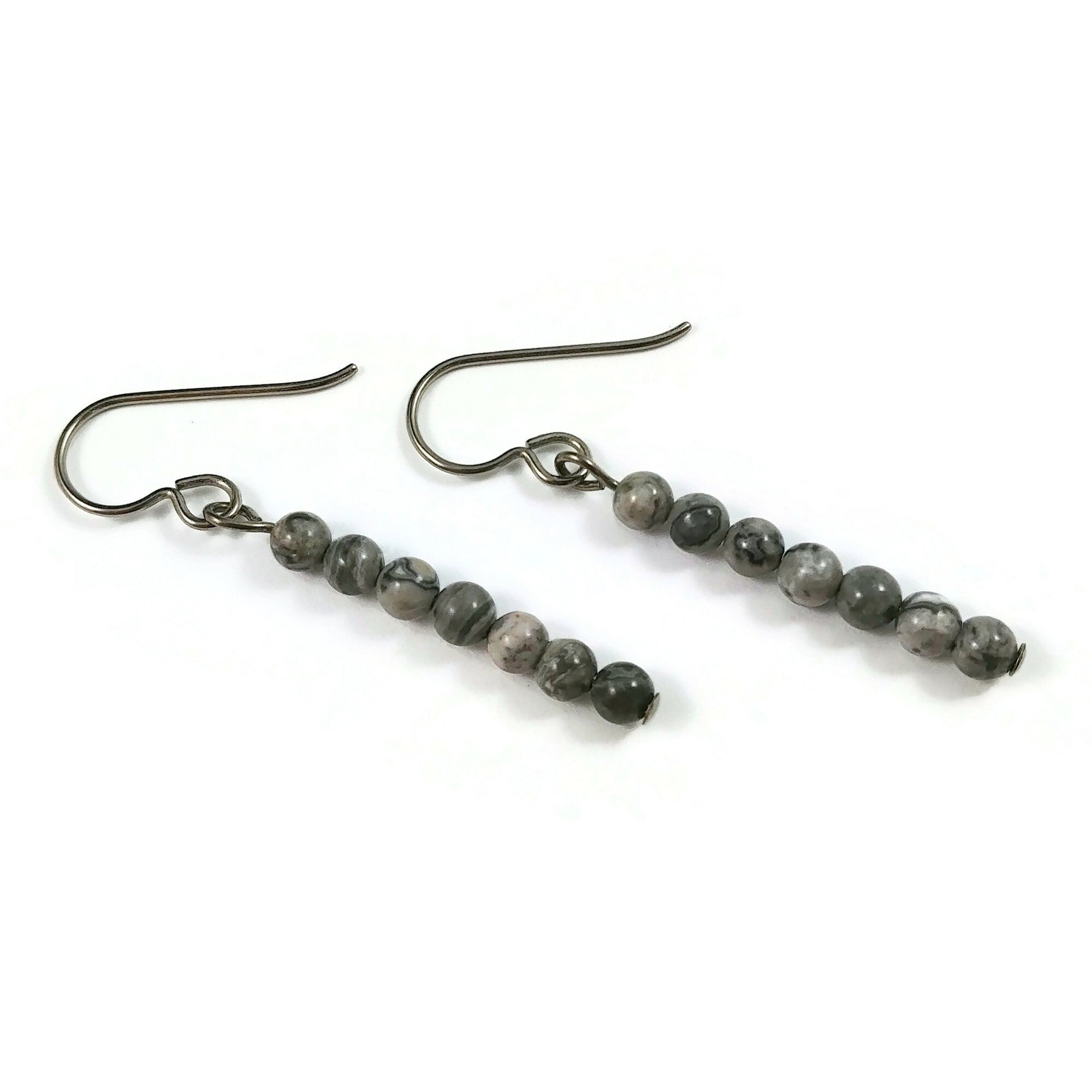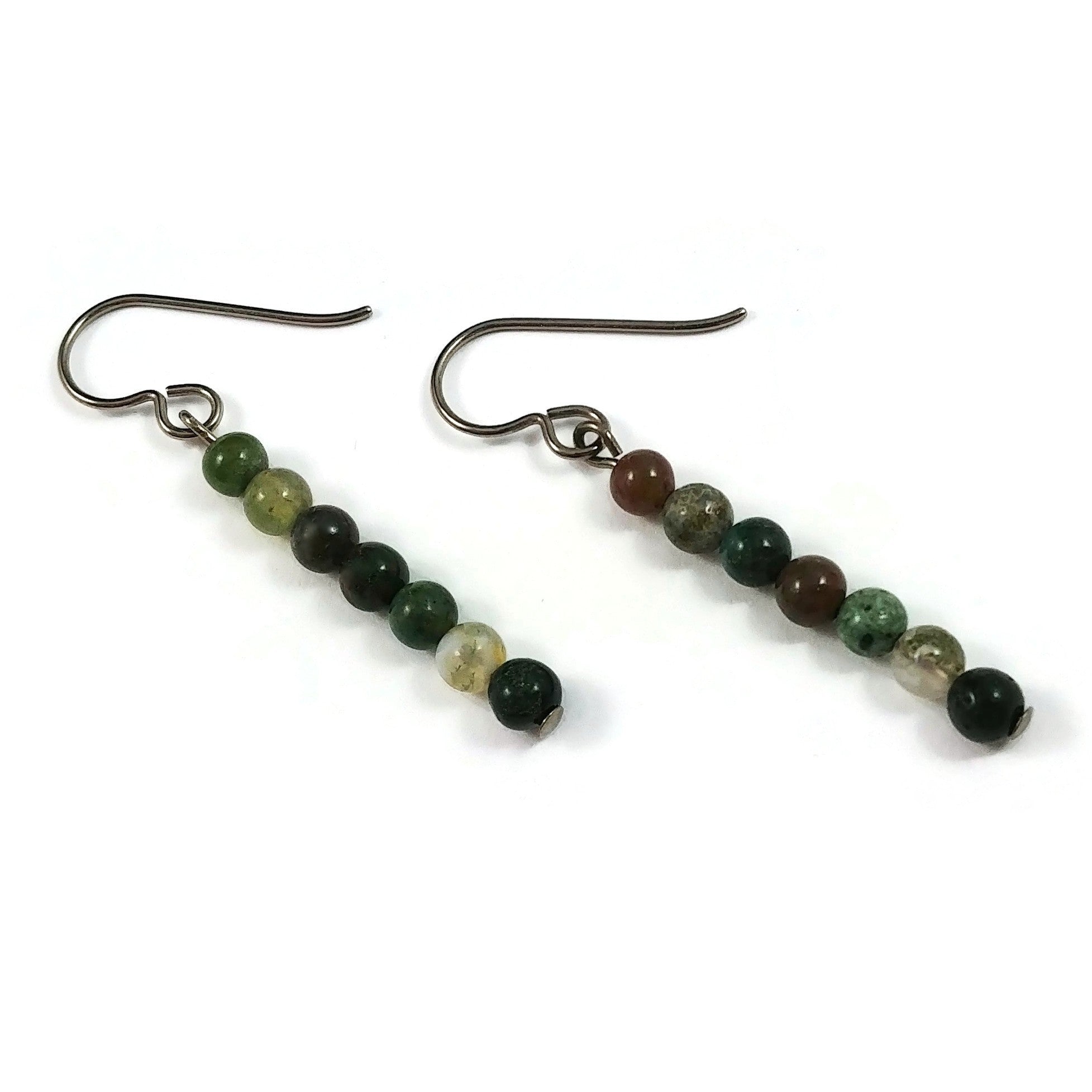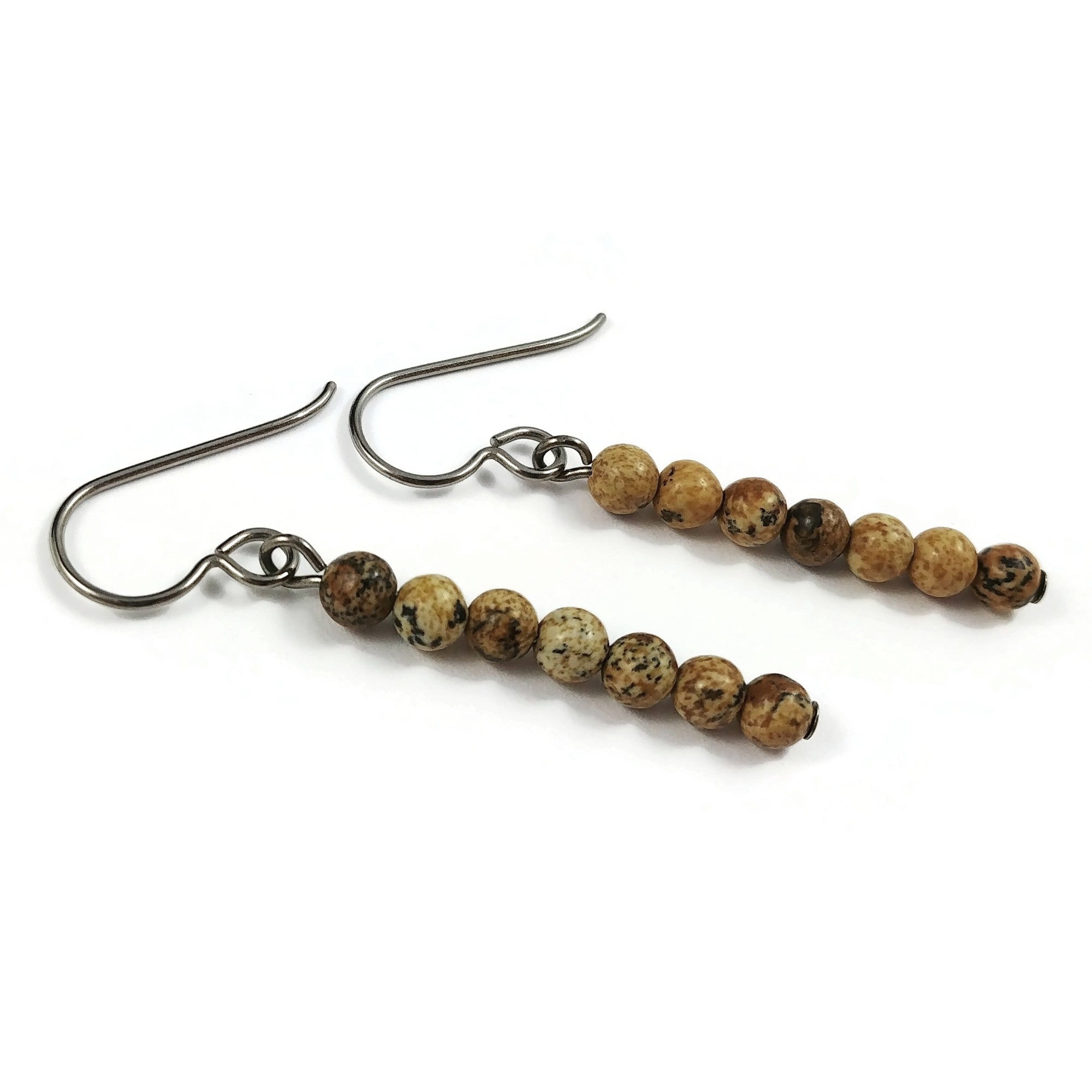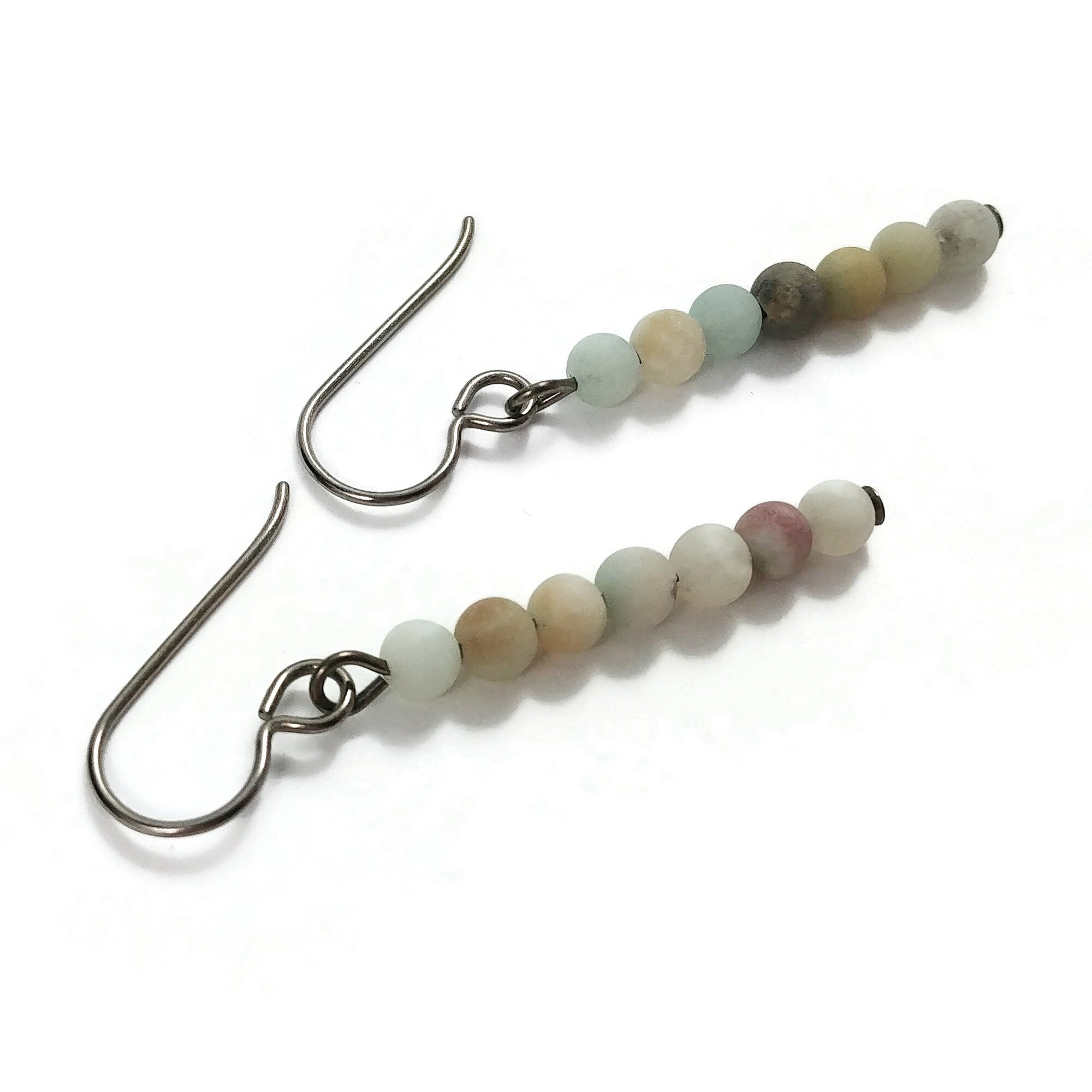 Hypoallergenic pure titanium earrings made with pure titanium ear wires (Grade 1, Commercially Pure Titanium with an F67 rating). Titanium is 100% hypoallergenic and will not produce skin irritation or discoloration. Unique collection of earrings featuring gemstone, crystal or glass pendants and cabochons.