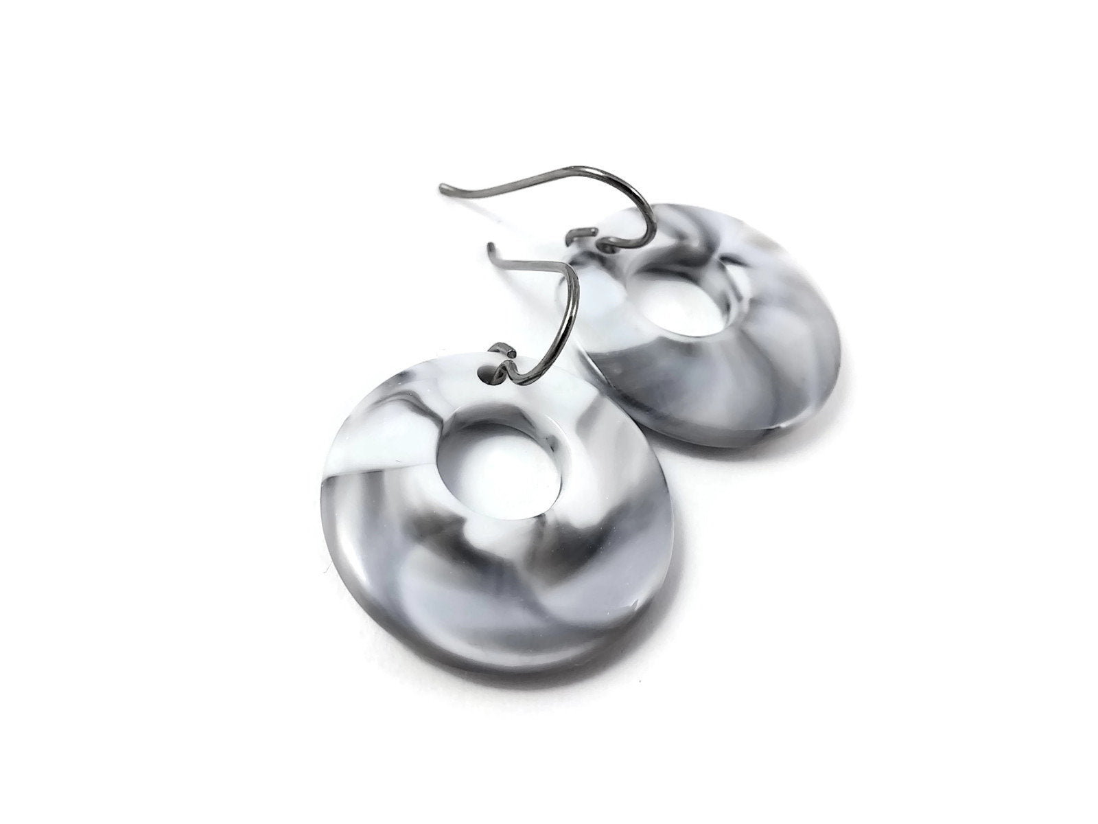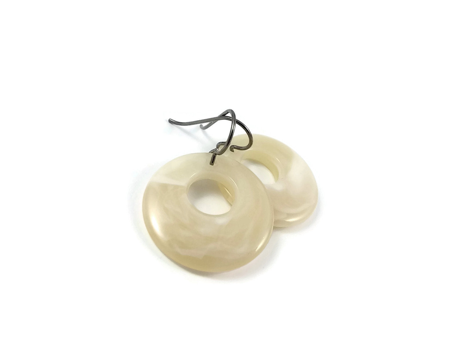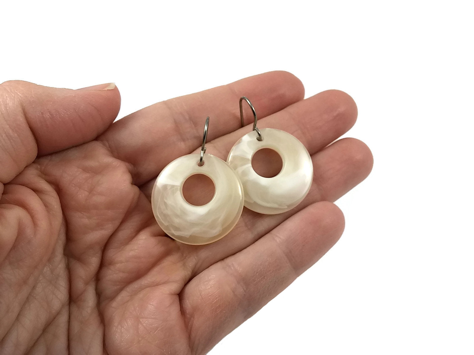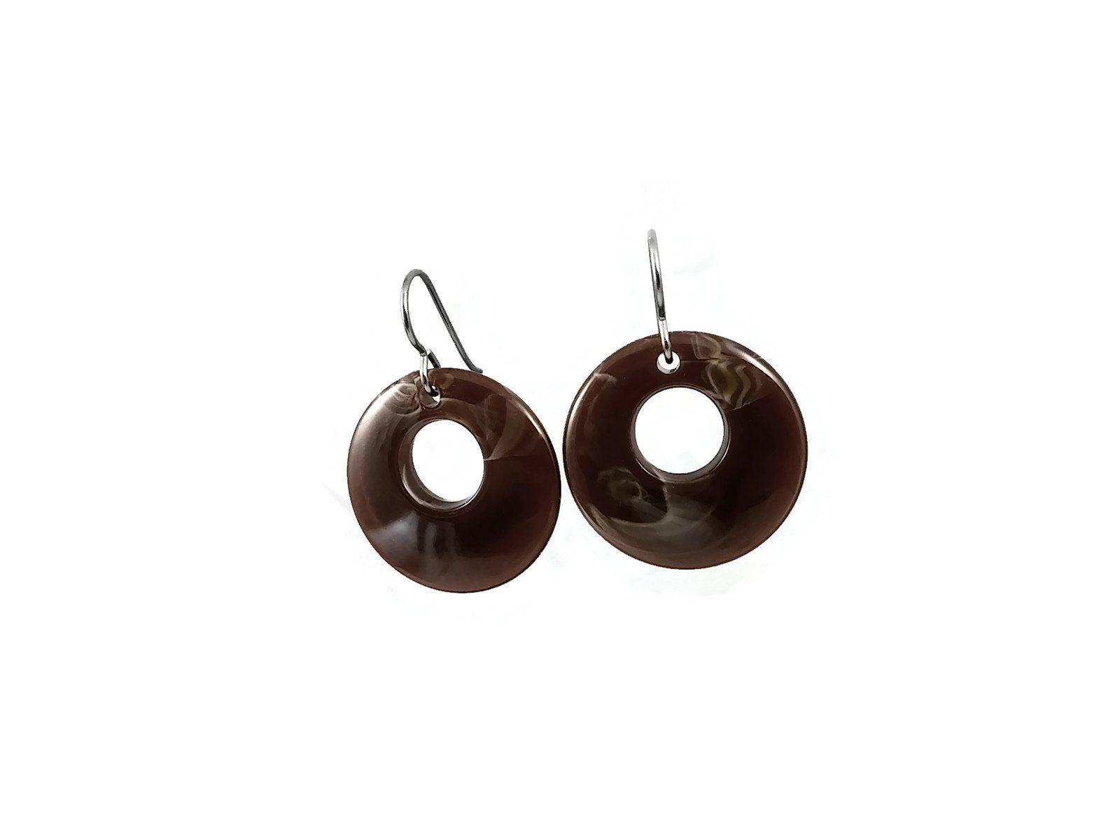 A Beautiful earrings! You'll want to wear them every day. Very fashionable with this resin round drop pendant.