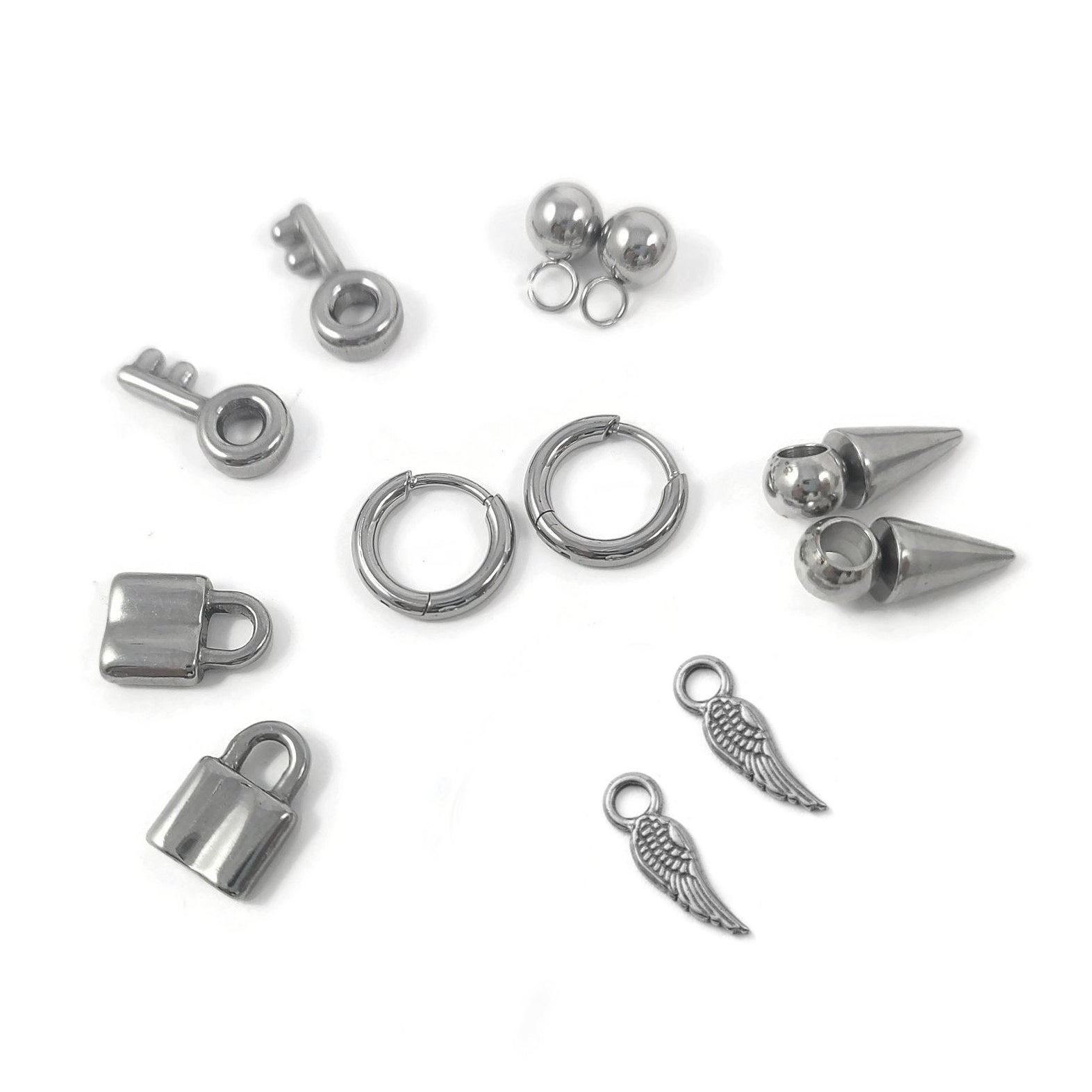 Pure titanium and stainless steel earrings. Earrings made with pure titanium ear wires (Grade 1, Commercially Pure Titanium with an F67 rating). Titanium is 100% hypoallergenic and will not produce skin irritation or discoloration. Unique stainless steel pendants perfect for sensitive skin.