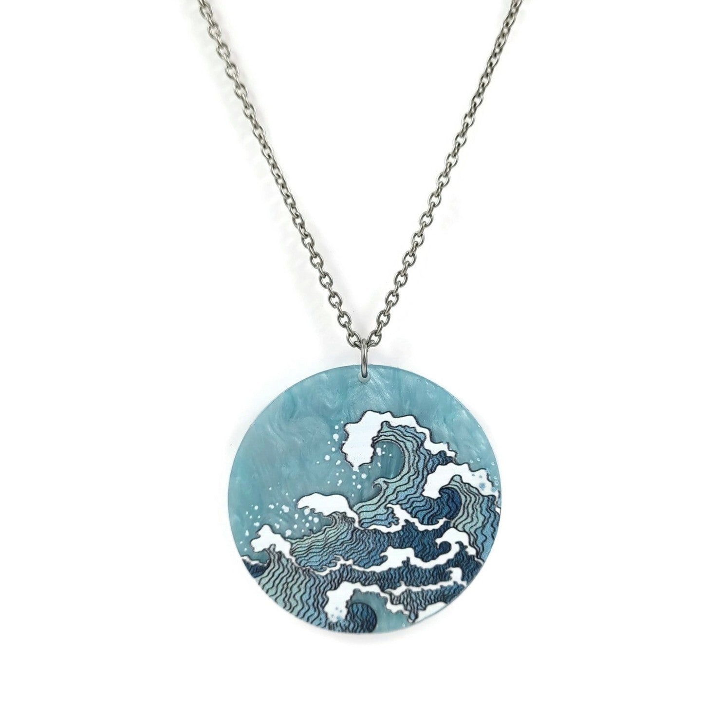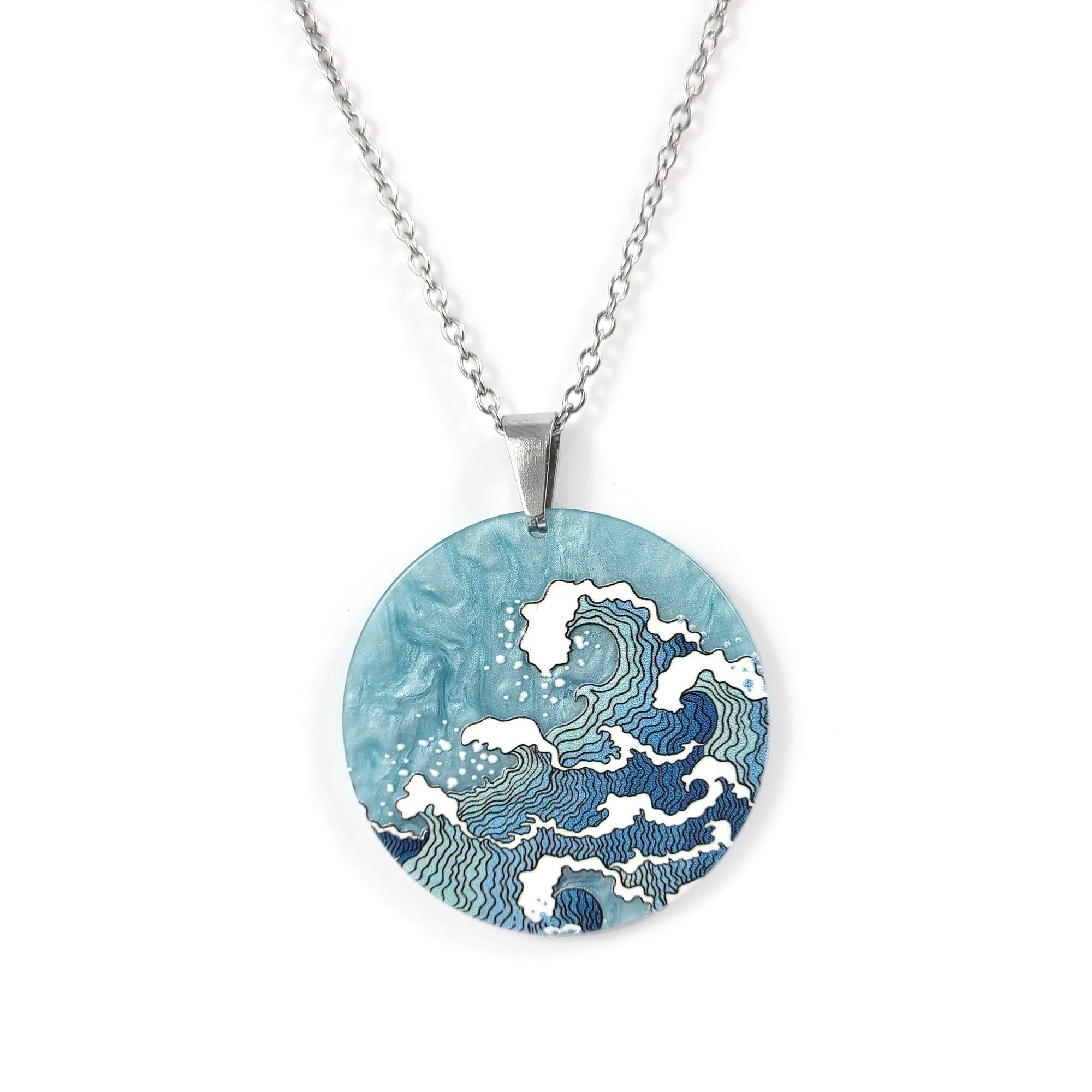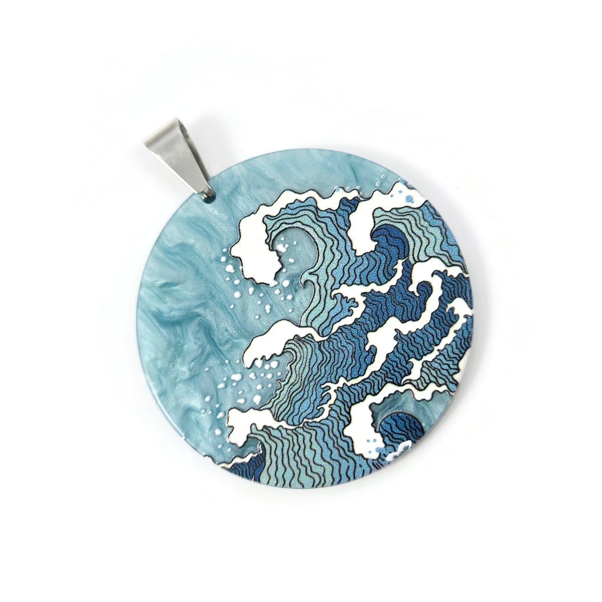 Introducing The Wave Necklace Pendant – where style meets the sea, designed especially for those with a sensitive touch. Embrace the beauty of the ocean without any worry. Our exclusively designed hypoallergenic acrylic pendants feature a captivating big wave print, inspired by the untamed spirit of the sea. Each pendant is a substantial 1.5 inches in diameter, perfect for making a statement while being lightweight enough to wear comfortably all day long.