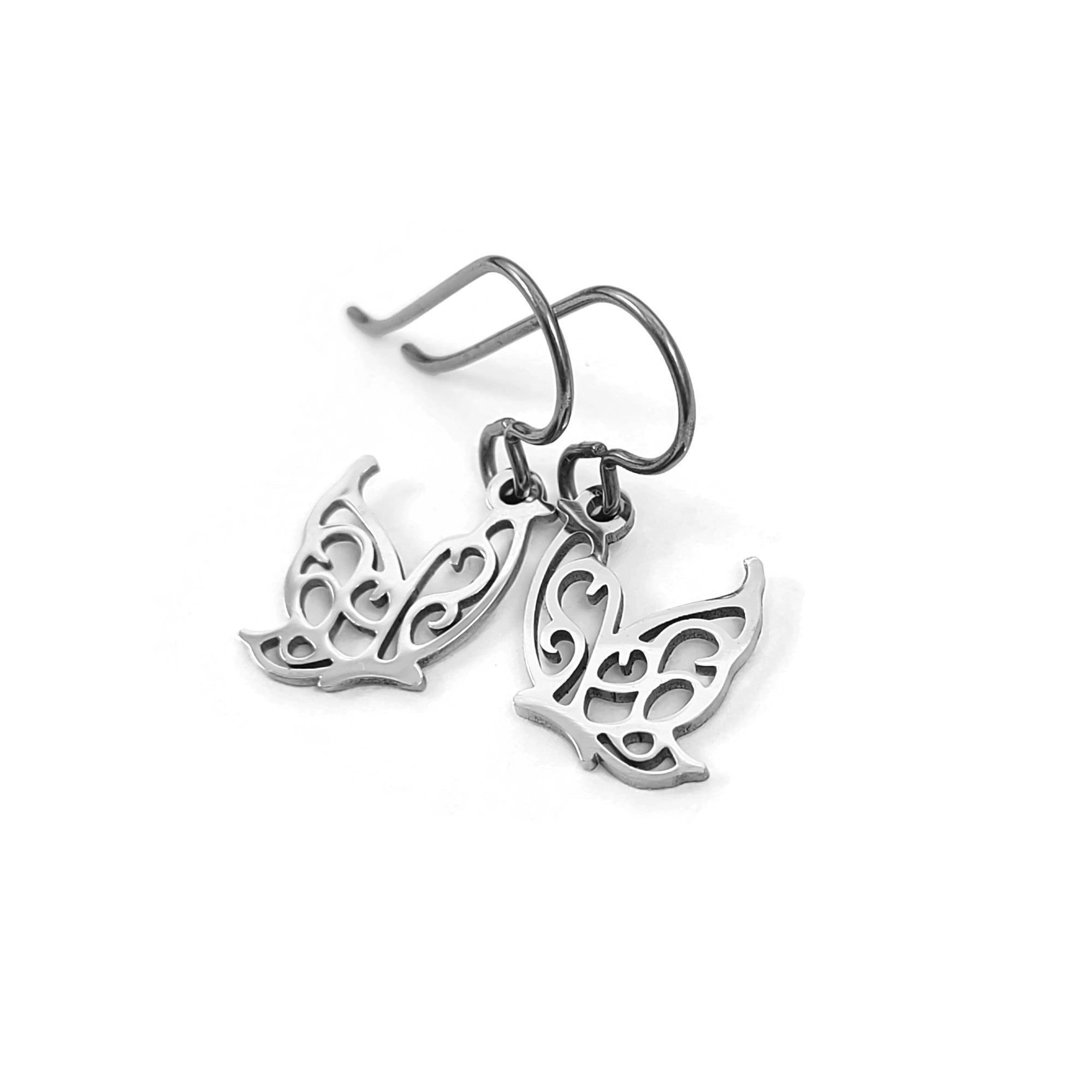 Butterfly filigree titanium drop earrings