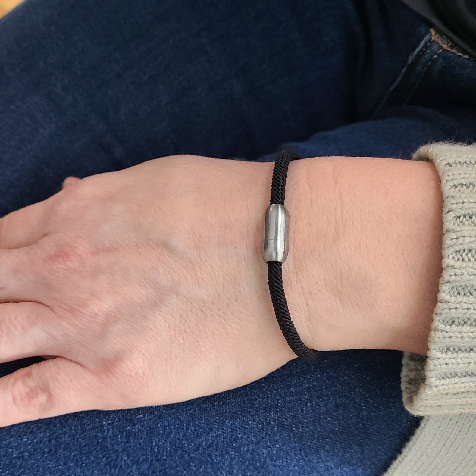 Boucle d'oreille ronde noire et bois - Titane et résine
