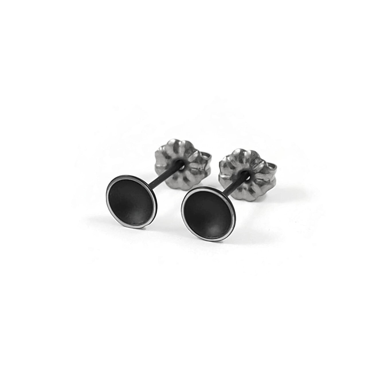 Boucles d'oreille agate naturelle noire - titane et pierre