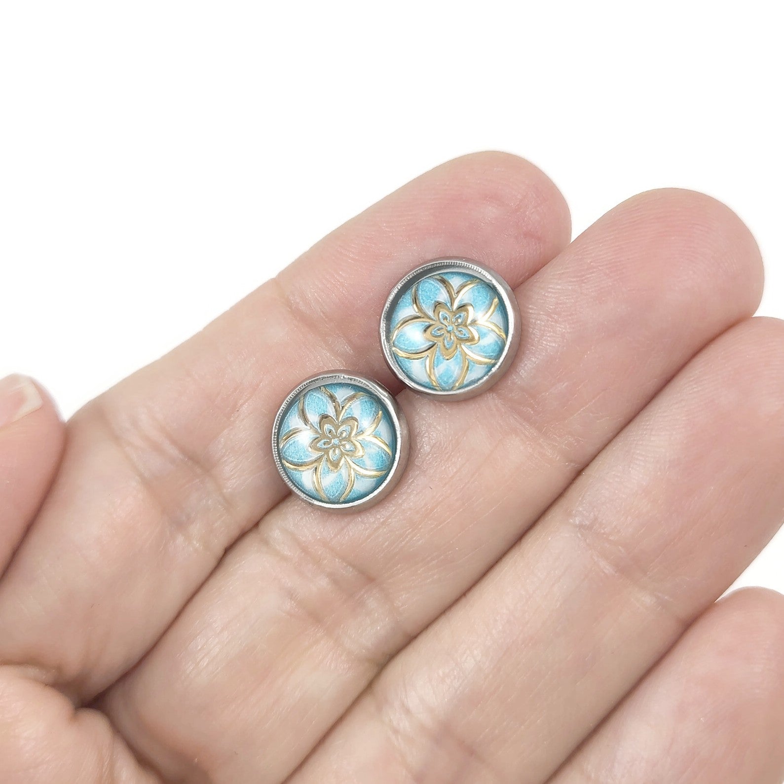 Boucle d'oreille pendentif fleur d'hiver - Titane, acier inoxydable et acrylique