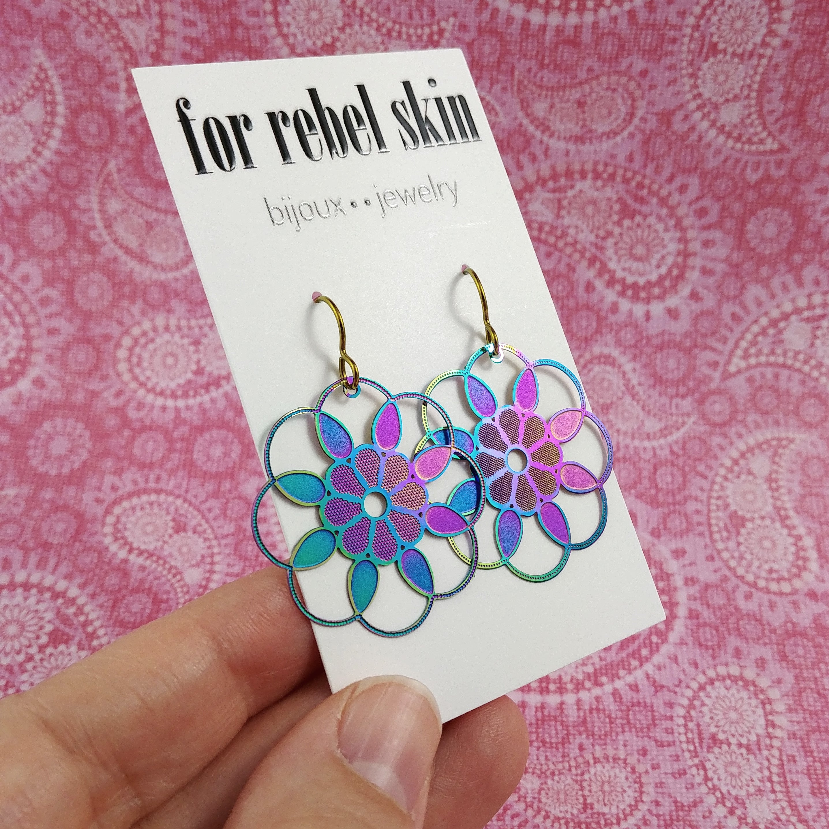Boucles d'oreilles arc-en-ciel rosace - Niobium - Boucles d'oreilles art déco hypoallergéniques