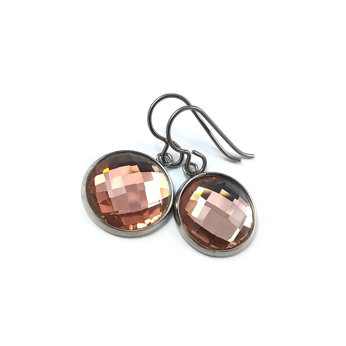 Boucles d'oreille rose pêche à facettes - Titane, inox et verre