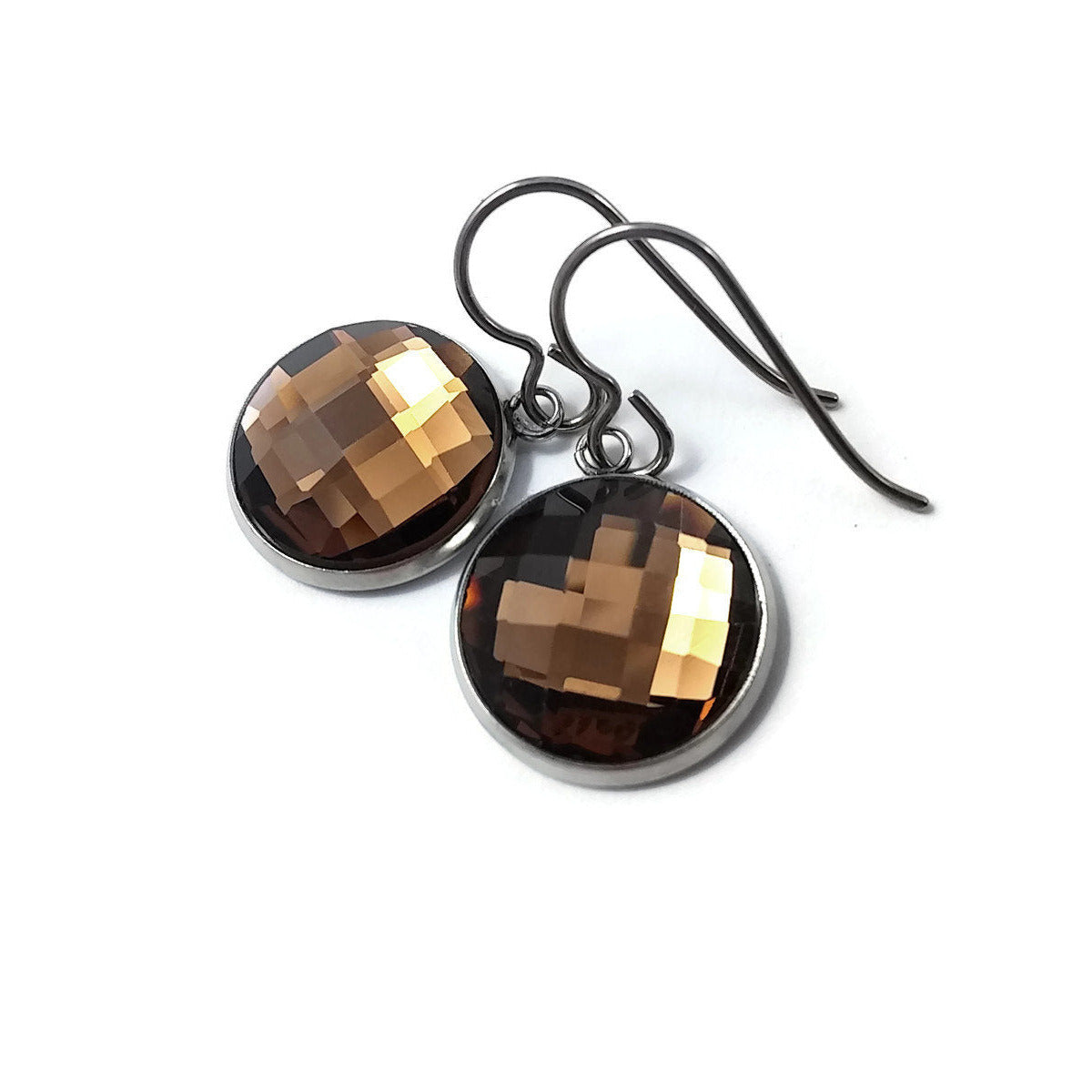 Boucles d'oreille ambre à facettes - Titane, inox et verre