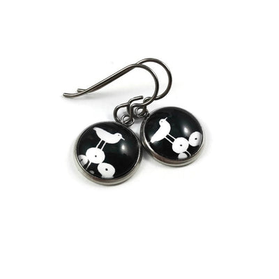 Boucle d'oreille pendentif oiseau - Titane, acier inoxydable et verre