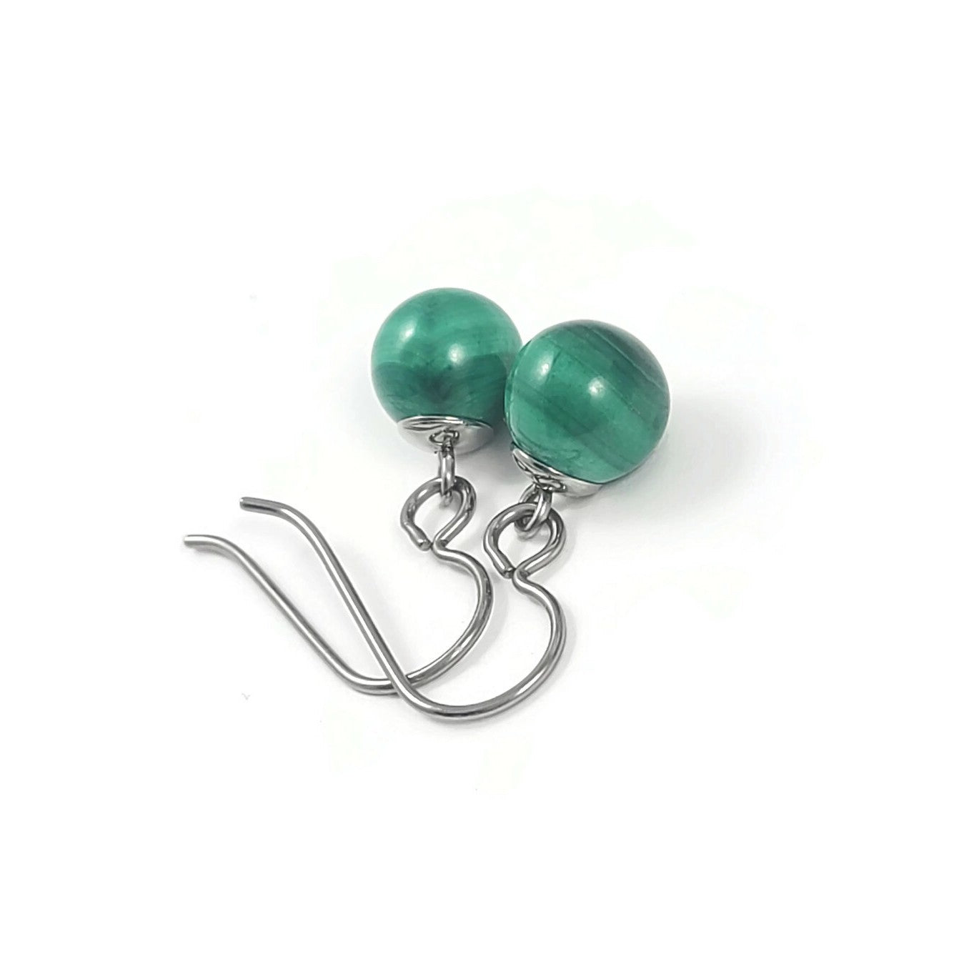 Boucles d'oreilles pendantes en titane et malachite naturelle