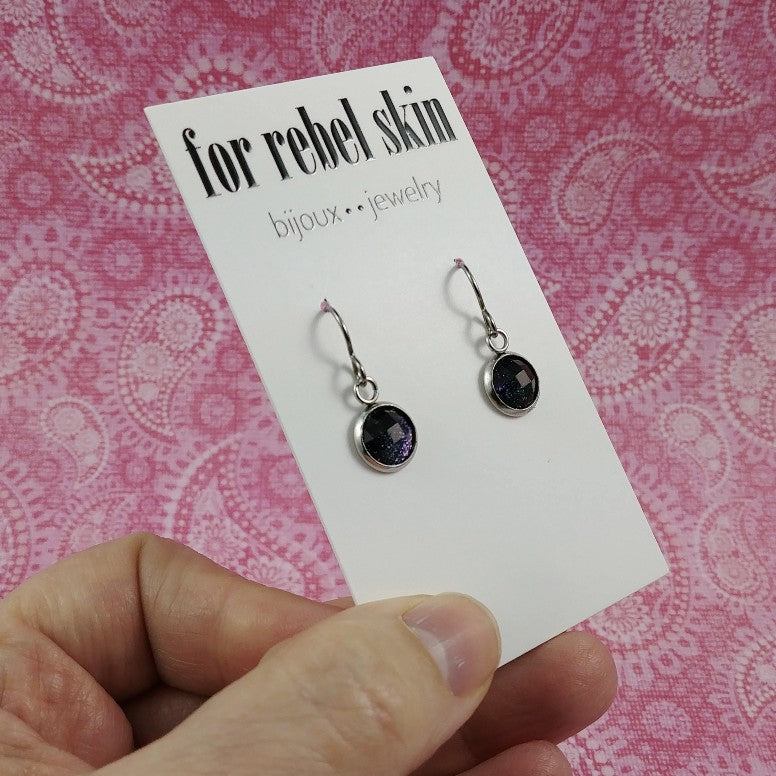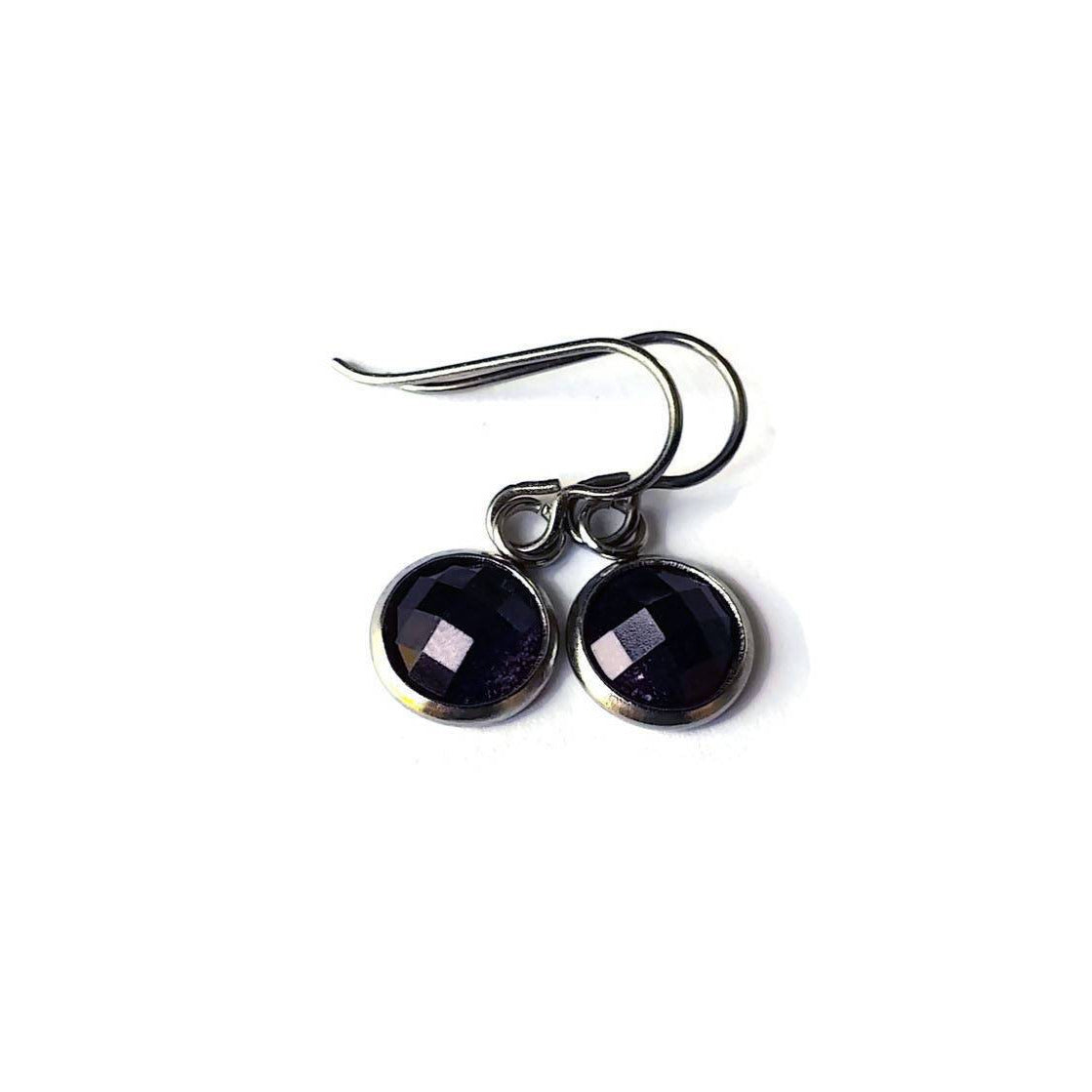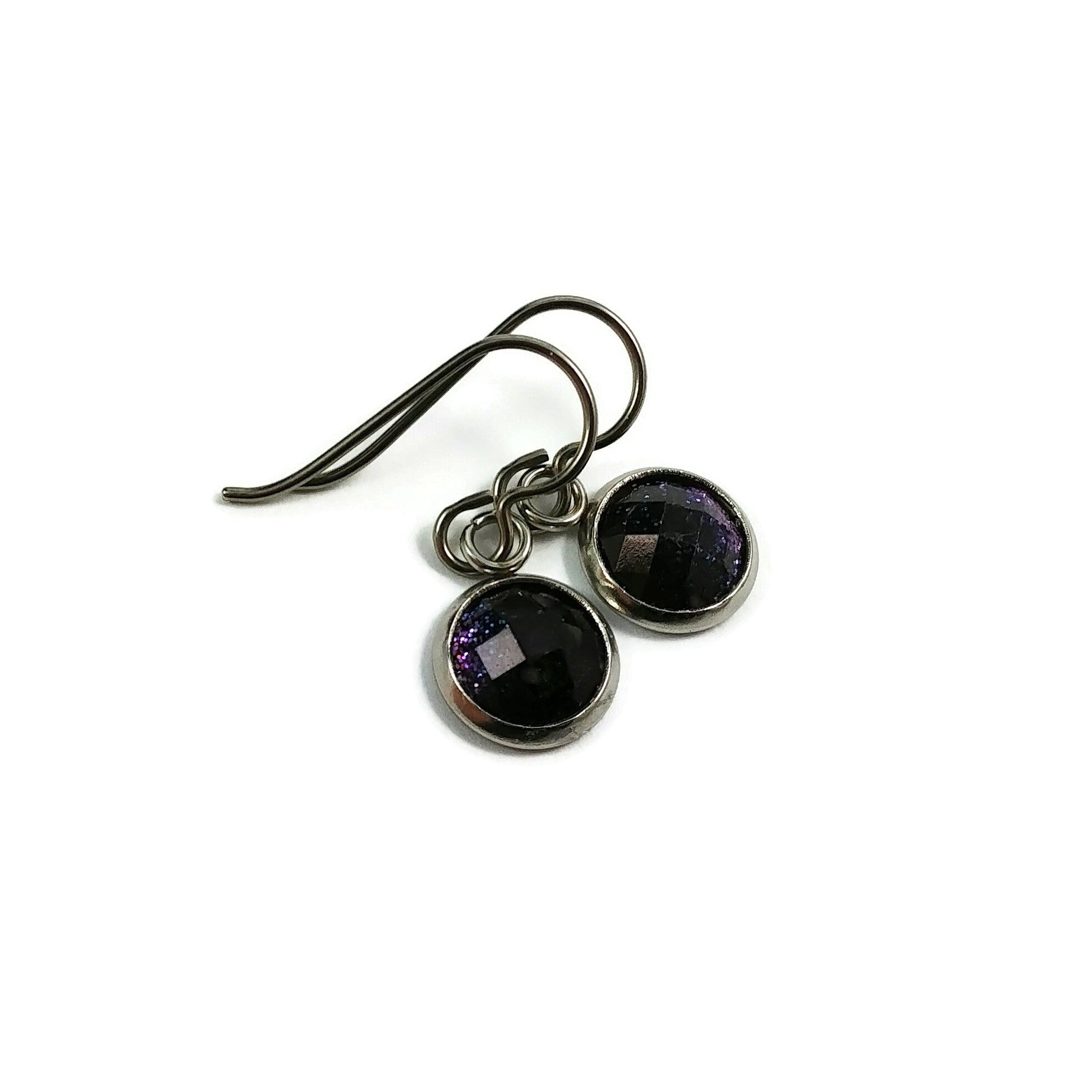Boucle d'oreille pendentif à facette violet scintillant - Titane, acier inoxydable et résine