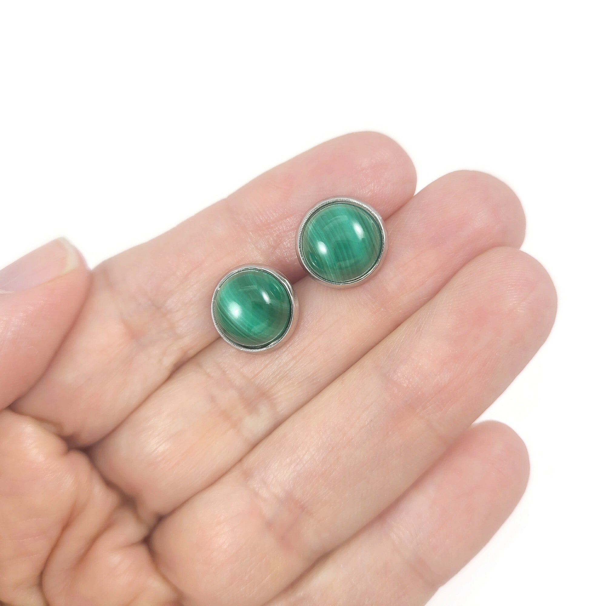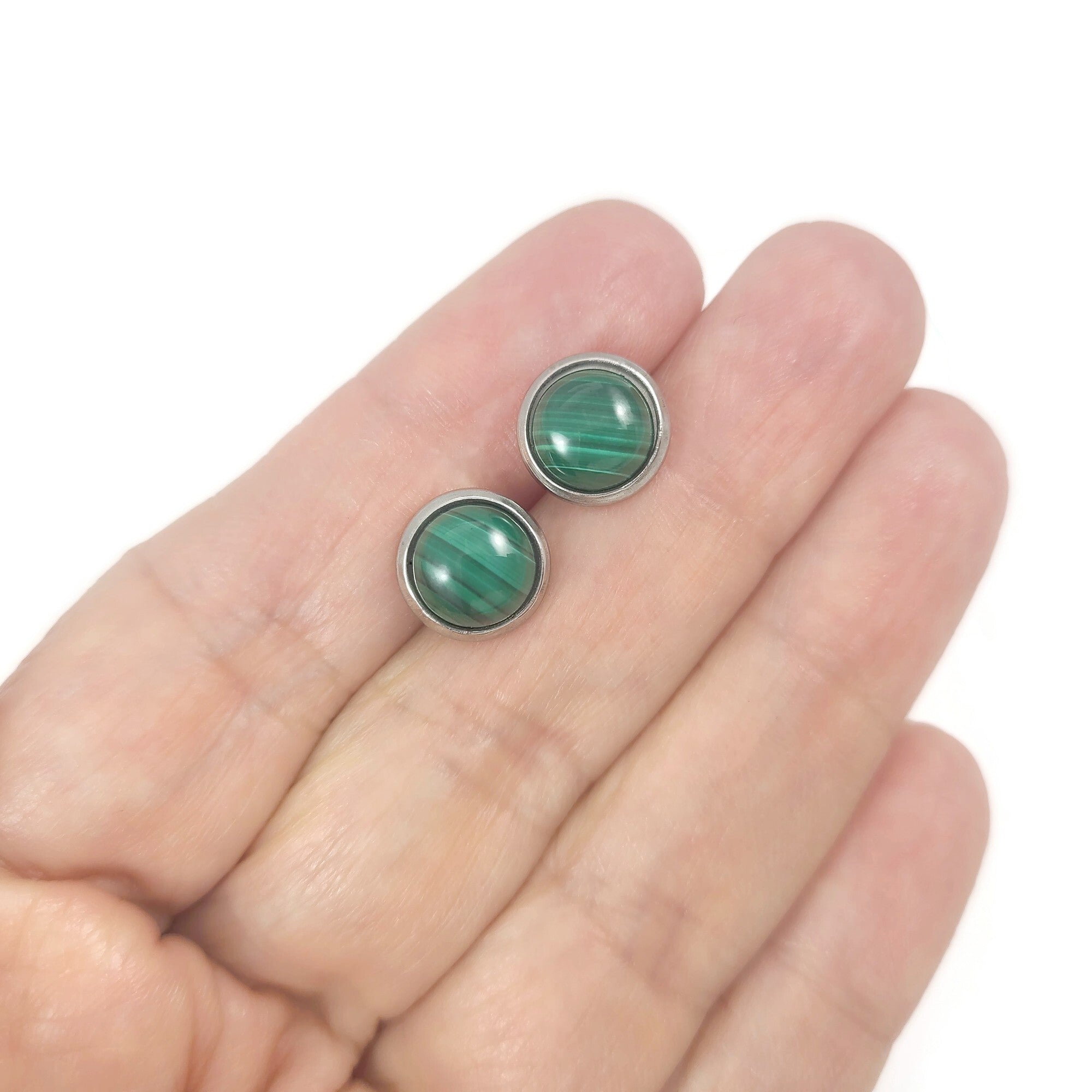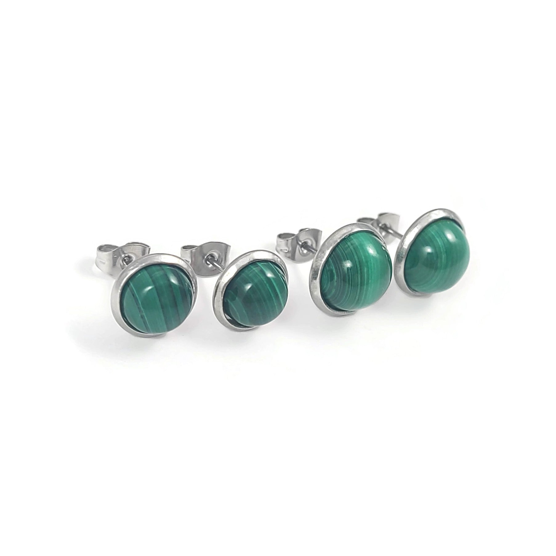 Découvrez le charme envoûtant des pierres naturelles avec nos puces d'oreilles cabochon en malachite, un mélange intemporel d'élégance naturelle et de minimalisme moderne. Fabriquées à la main, chaque boucle d'oreille est ornée d'un cabochon en malachite d'un vert profond, poli pour une finition douce et brillante qui met en valeur ses motifs striés emblématiques. Pierre de protection et de transformation, la malachite apporte profondeur et sens à votre style au quotidien.