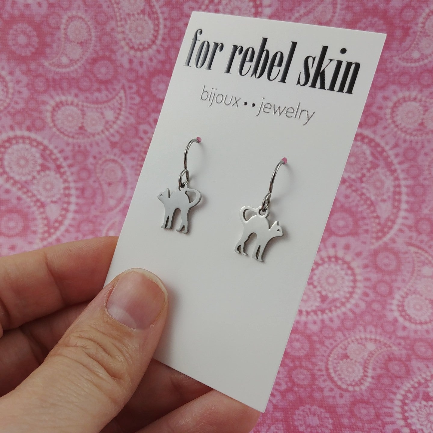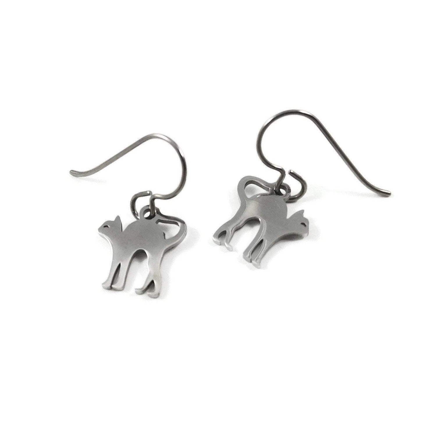 Boucles d'oreille petit chat égyptien - Titane et inox