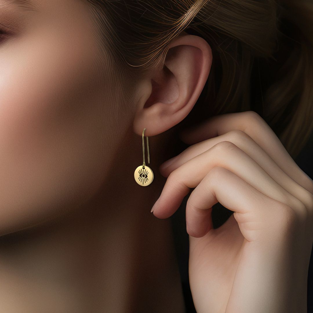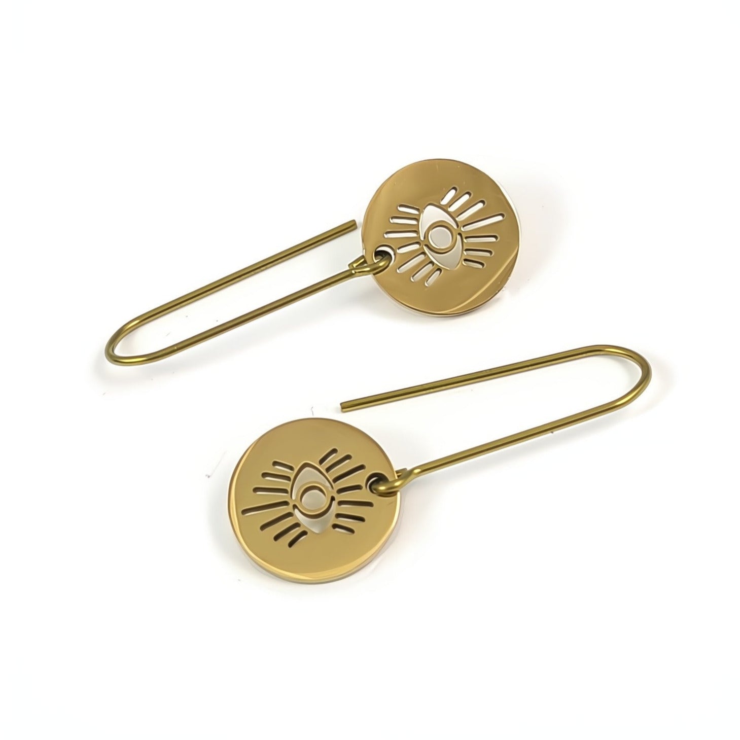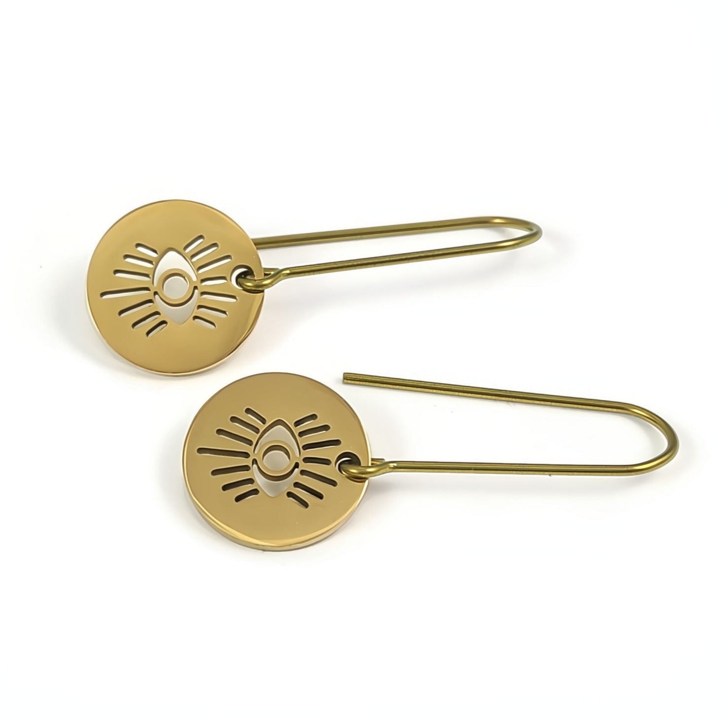 Boucles d'oreille longues Œil de la Providence - Niobium et inox