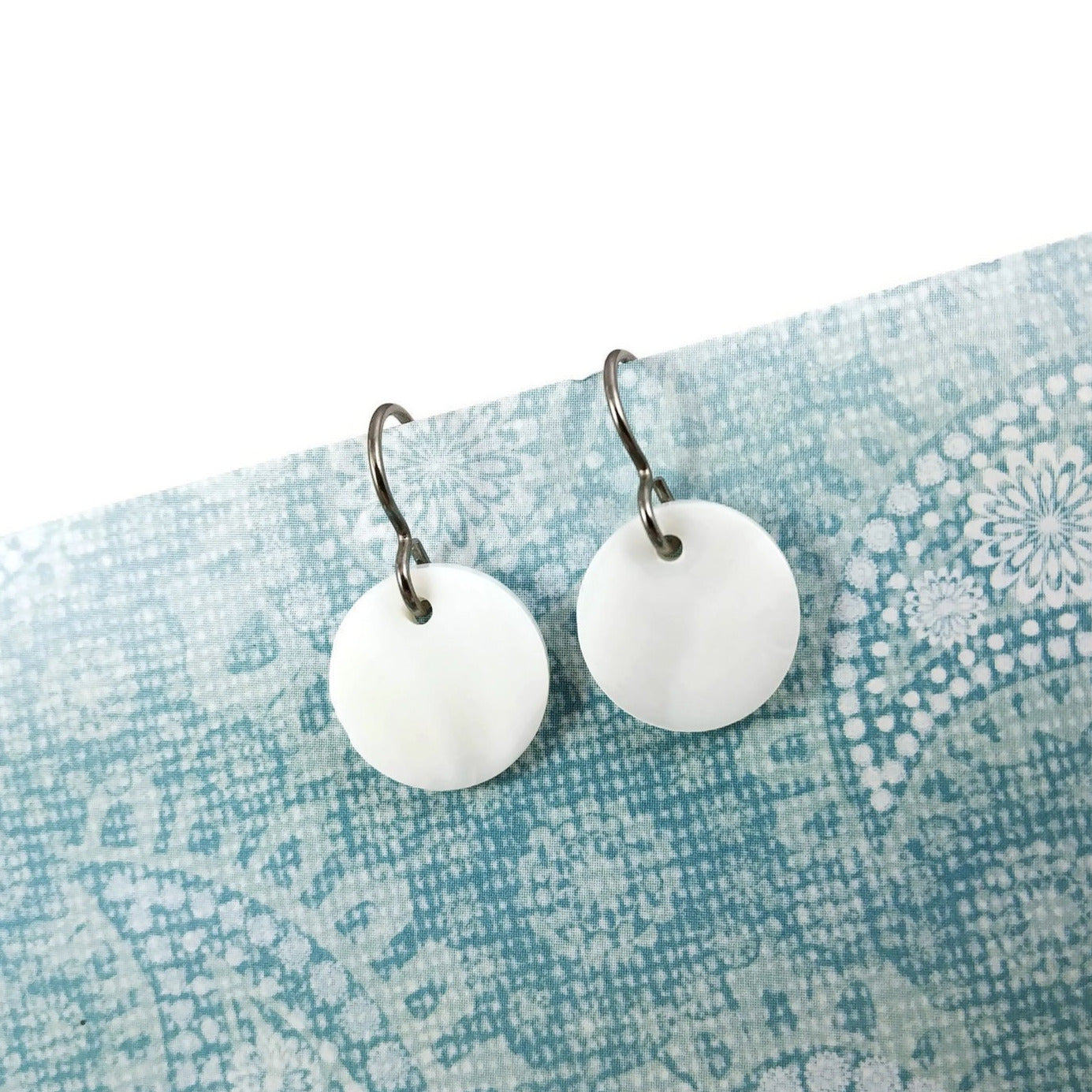 Montées sur des crochets en titane 100% pure, hypoallergénique. Les pendentifs en nacre naturel sont sans danger pour votre peau.