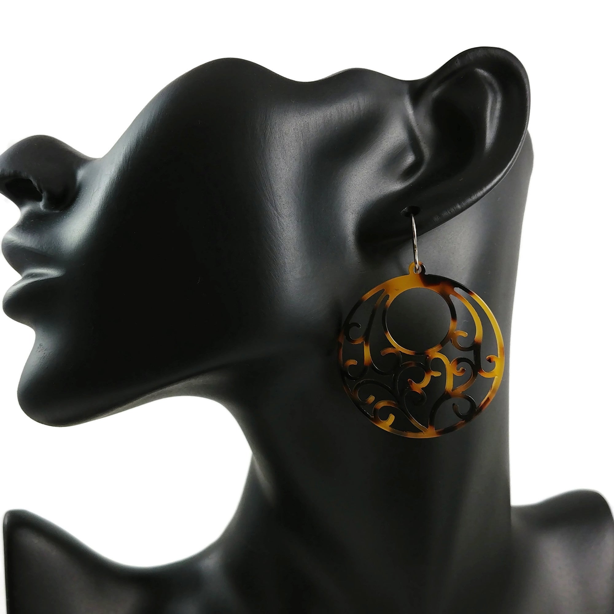 Boucle d'oreille créoles dentelées marron - Titane et acrylique