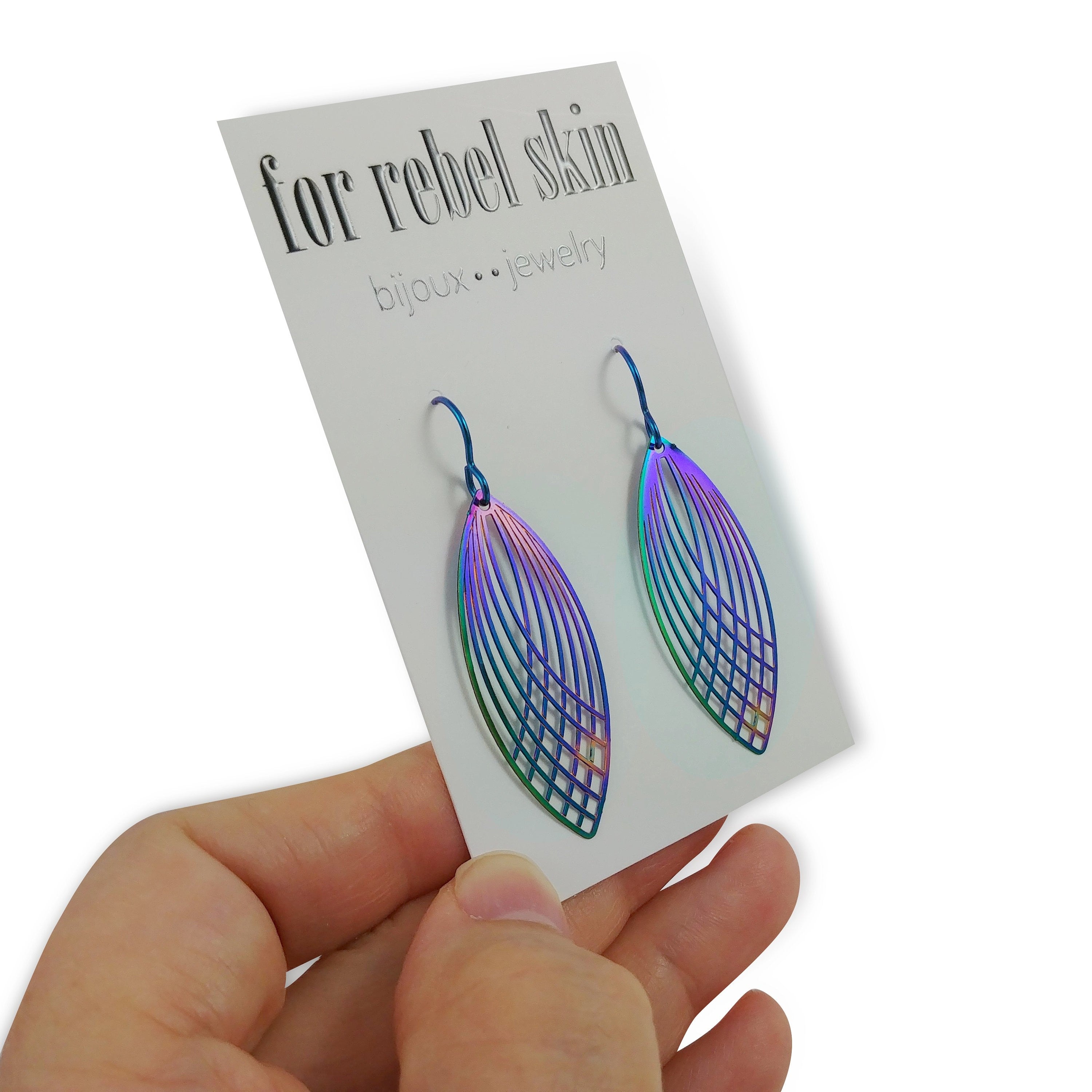 Boucles d'oreilles ellipse longues - Niobium et inox hypoallergénique