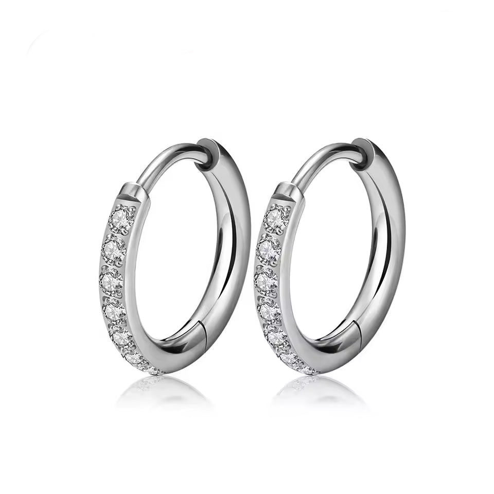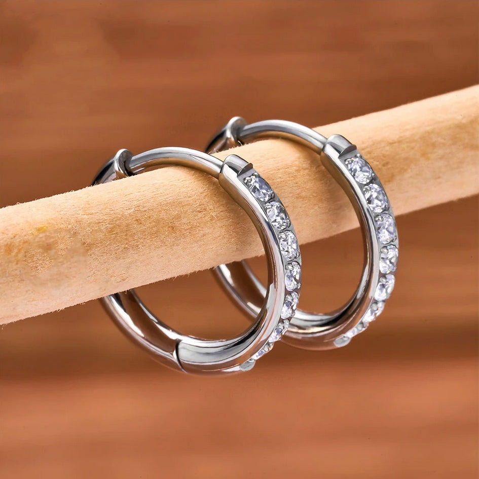 Découvrez nos créoles scintillantes en titane et zirconiums, conçues pour les oreilles sensibles et un éclat quotidien. Fabriquées en titane G23 de qualité médicale (ASTM F136), ces boucles d'oreilles sont 100 % hypoallergéniques, sans nickel et conviennent même aux peaux les plus réactives.
