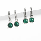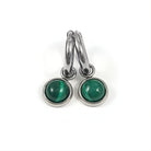 Boucles d'oreilles créoles en titane naturel pur, avec de jolies breloques malachite en acier inoxydable. Vendu par paire.