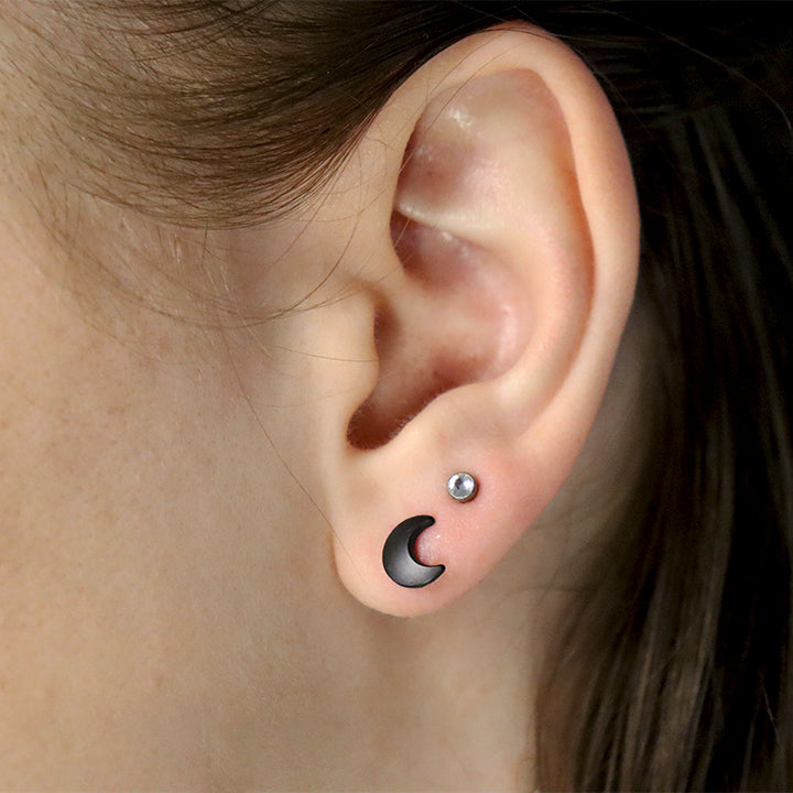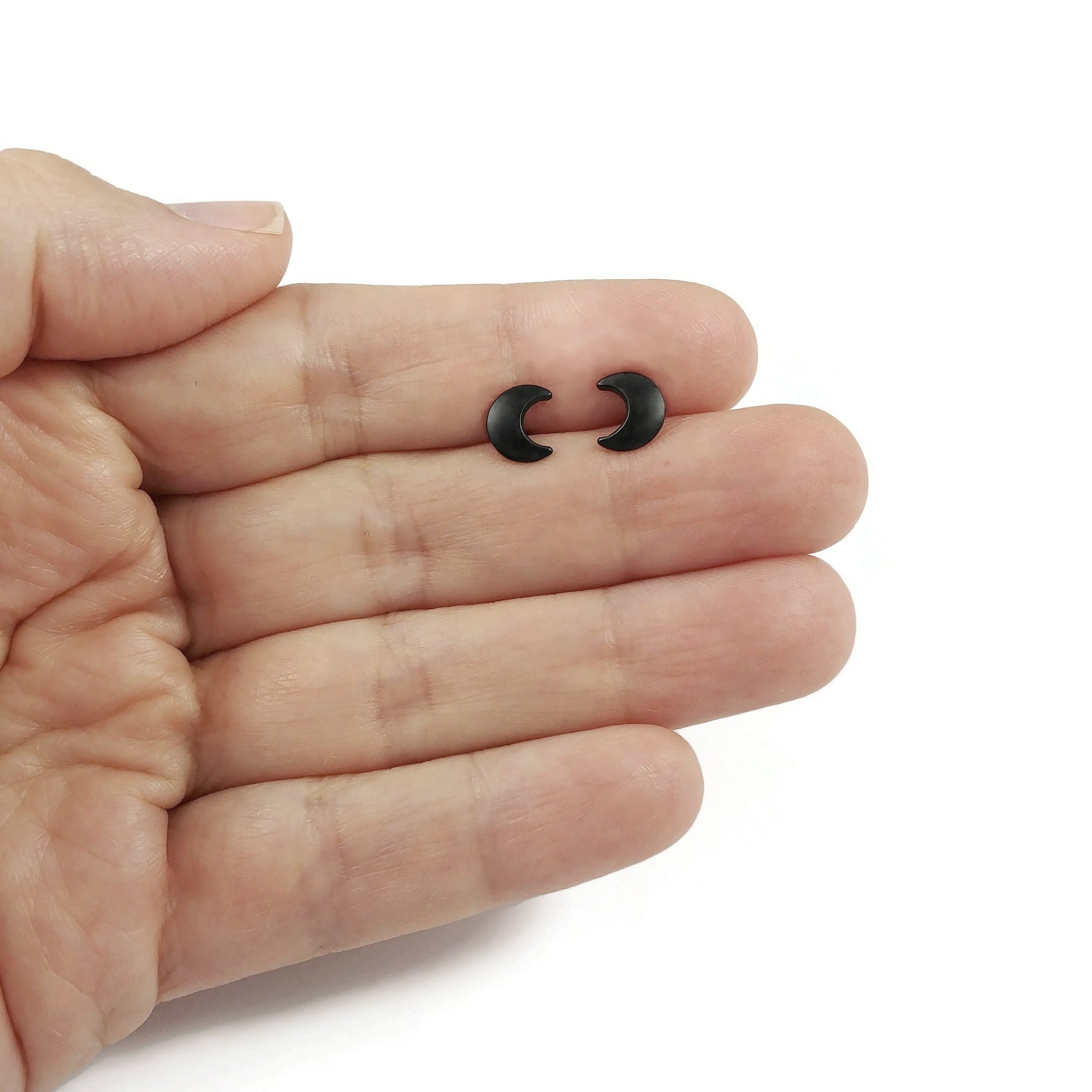 De petites boucles d'oreilles lune. 8mm x 6mm de large. Papillon en titane inclus.