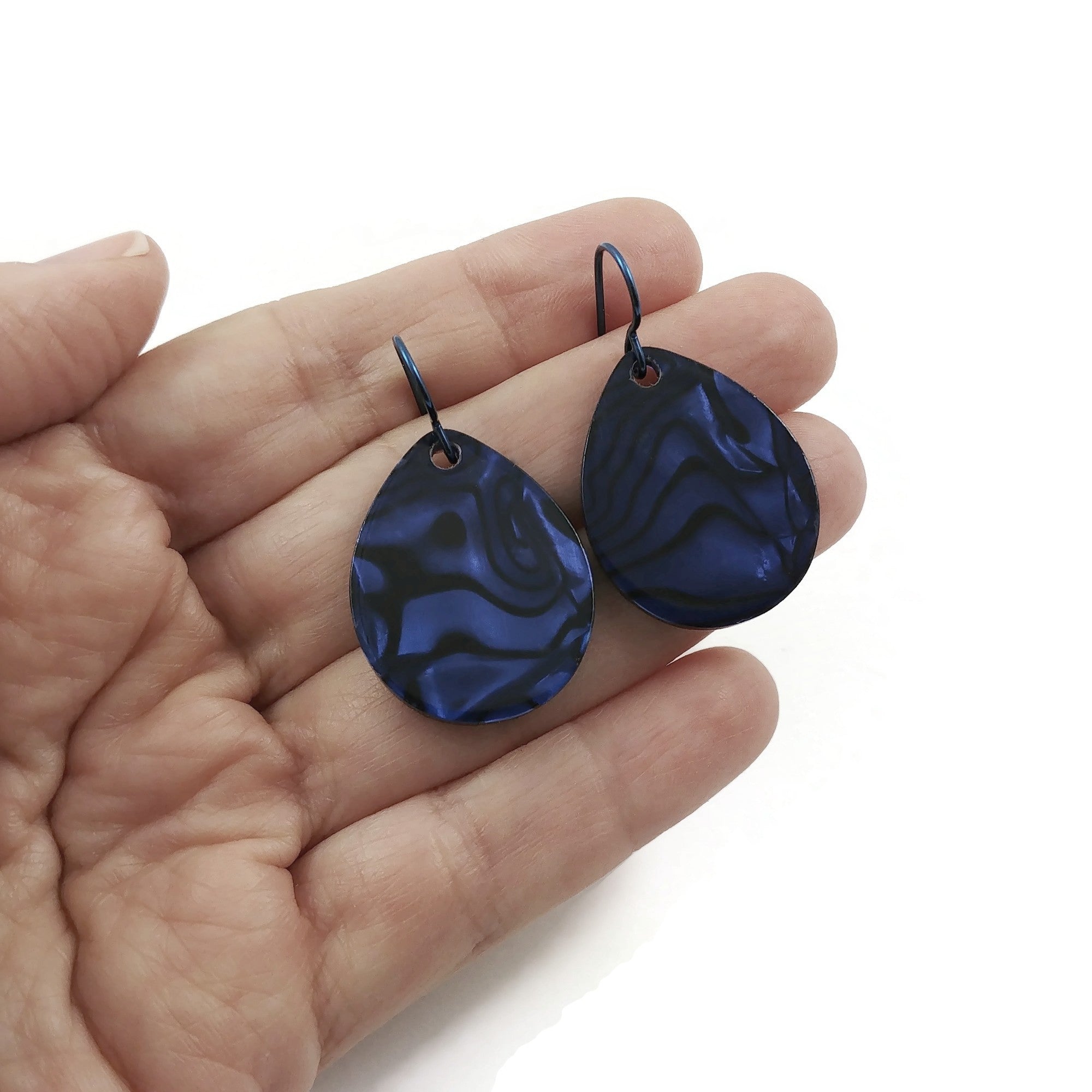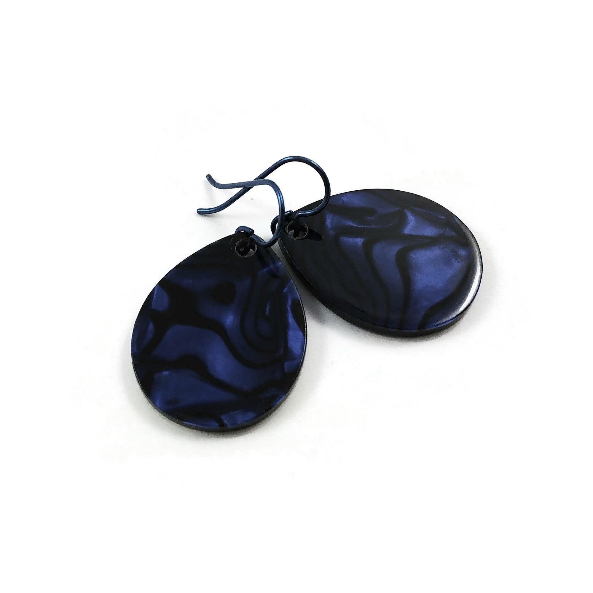 Montées sur des crochets en titane 100% pure, hypoallergénique. Les pendentifs en acrylique sont non-allergènes. Aussi disponible avec crochet en niobium bleu. Le niobium est hautement biocompatible tout comme le titane.