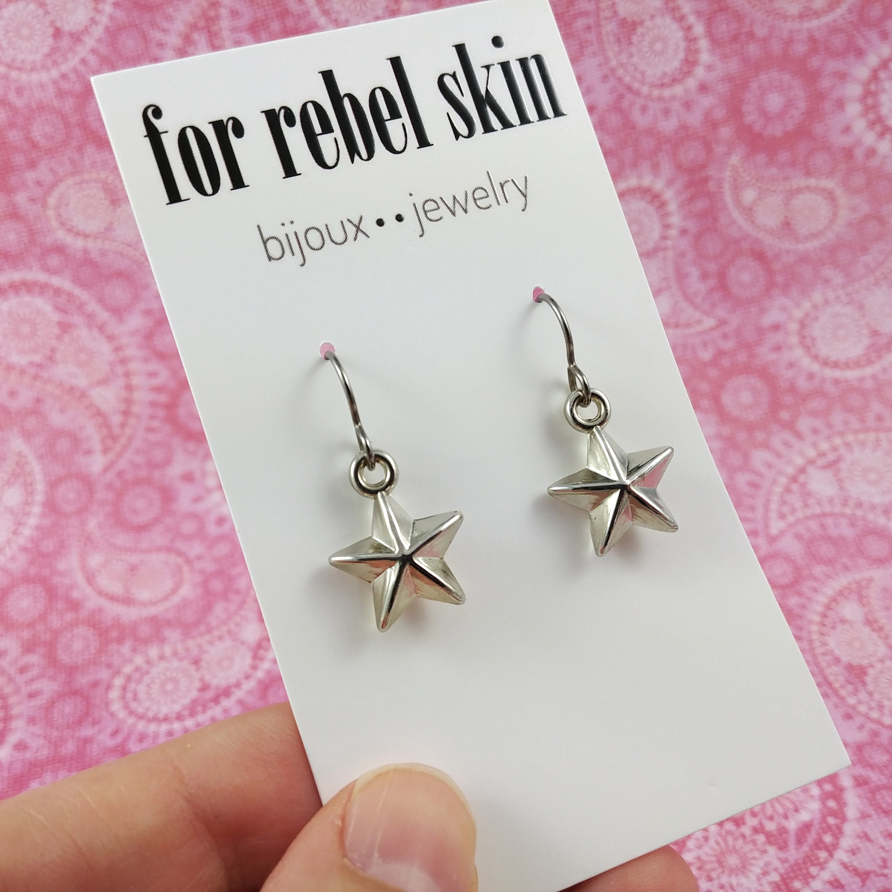 I bought several items from RebelMoods and this pair is the lightest out of all of them, which makes this my new go-to. The shape and size is a perfect complement to any hairstyle I change to. Love this more than I have words for.