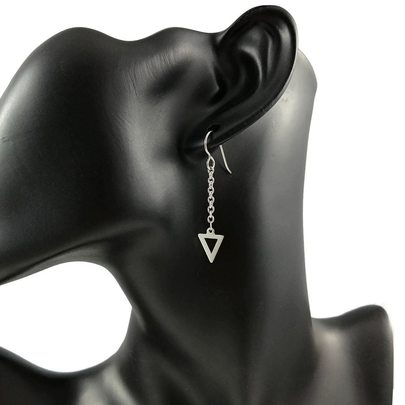 Boucles d'oreille triangle et chaine - Titane et inox